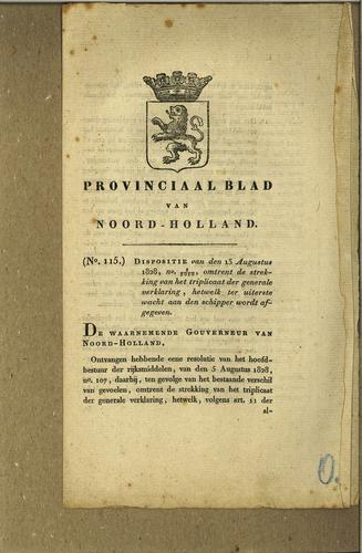 Plakkaat afgegeven aan schipper, 1828