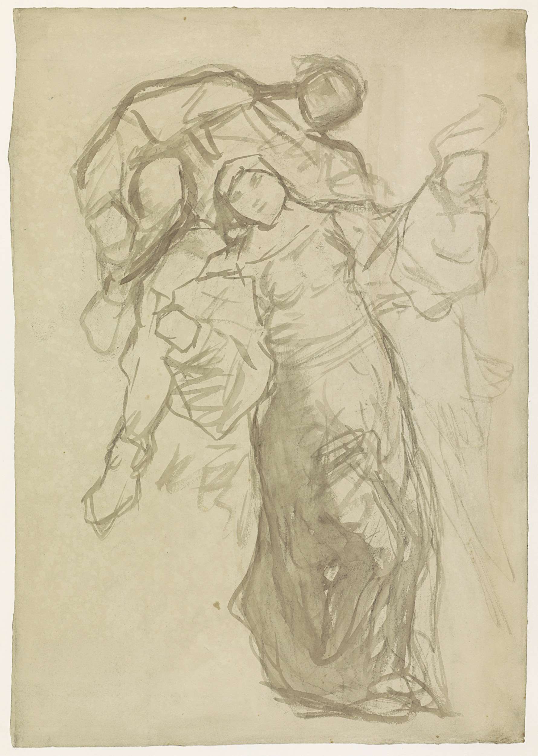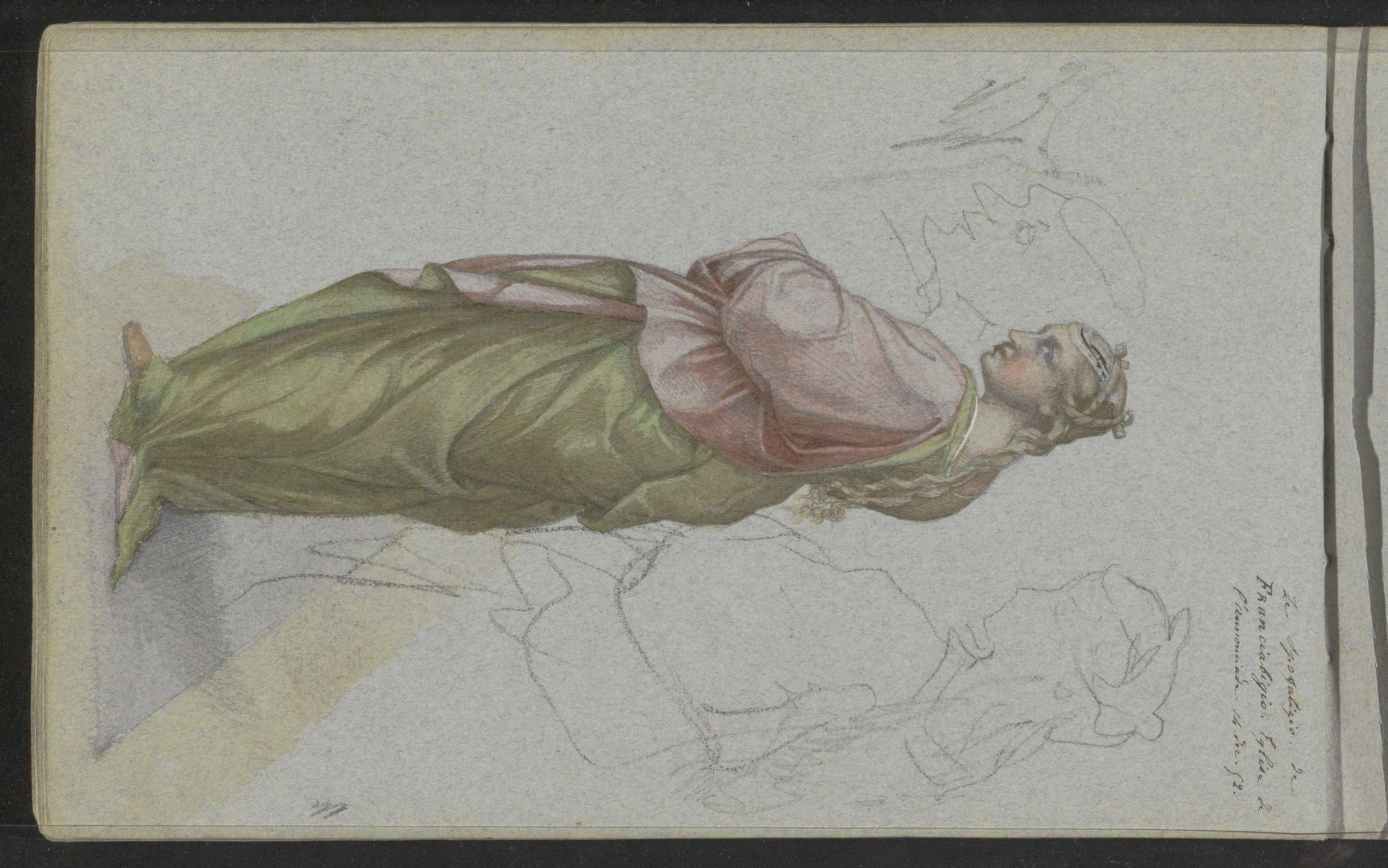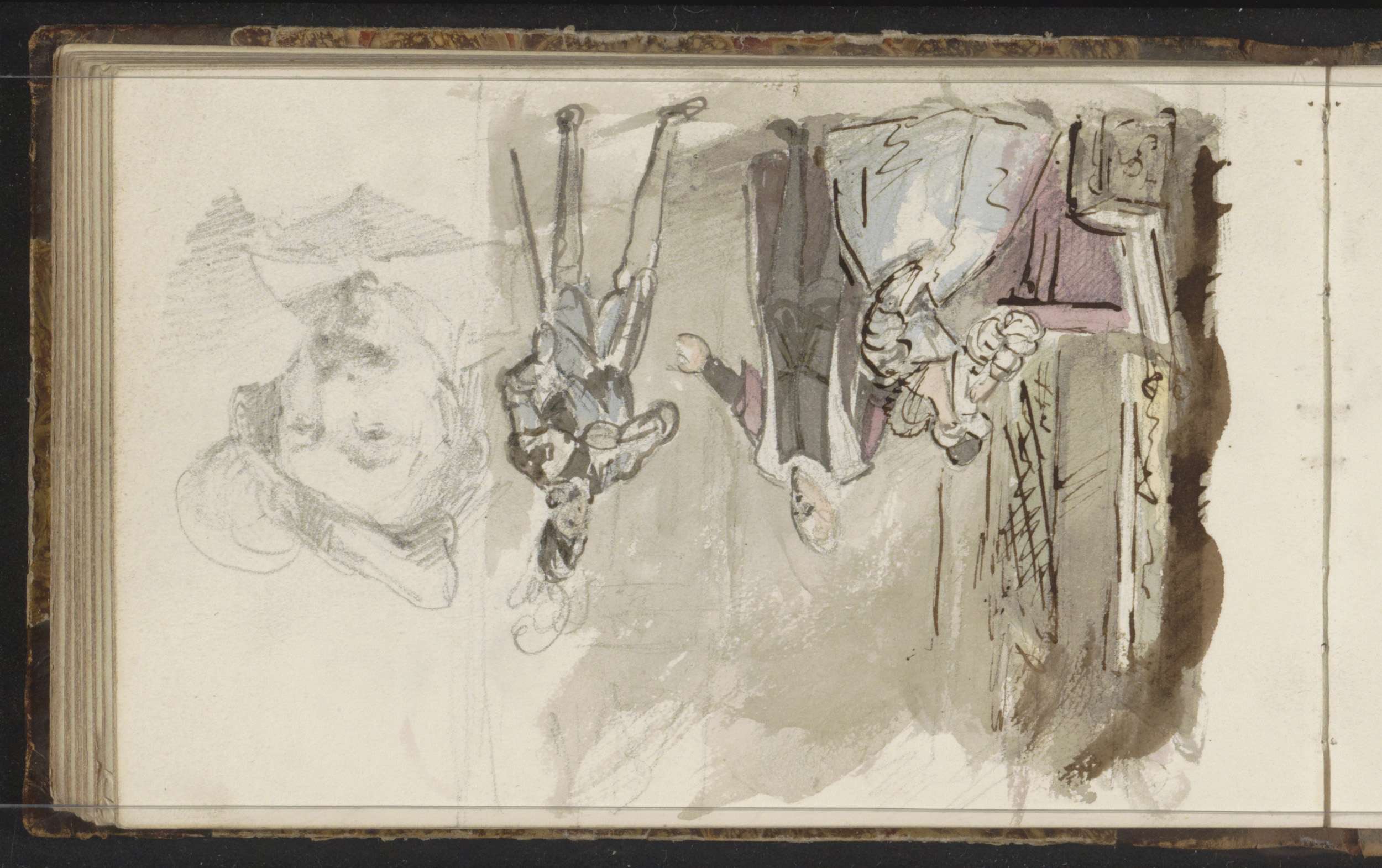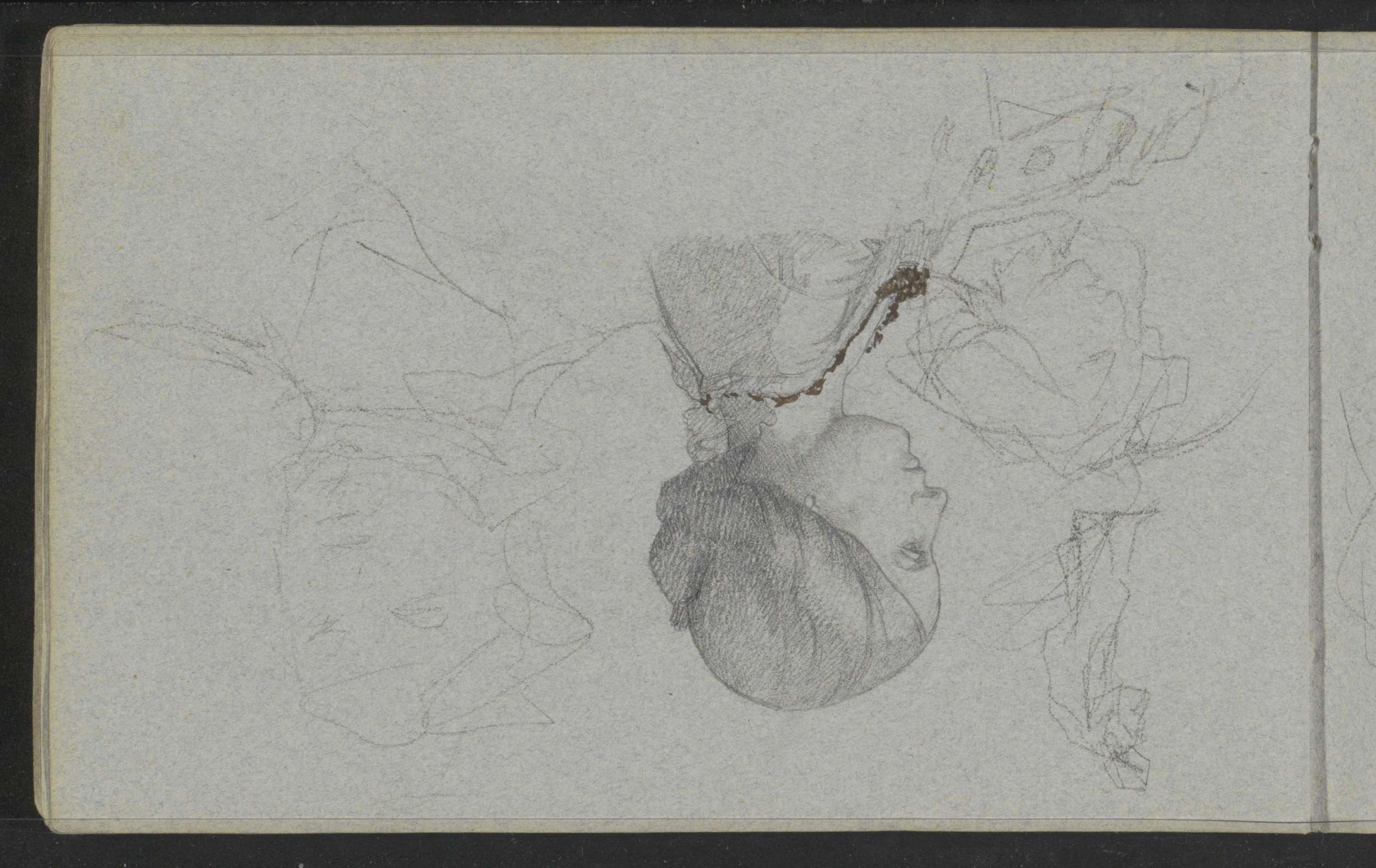 Studieblad, onder andere met een portretkop van een ...