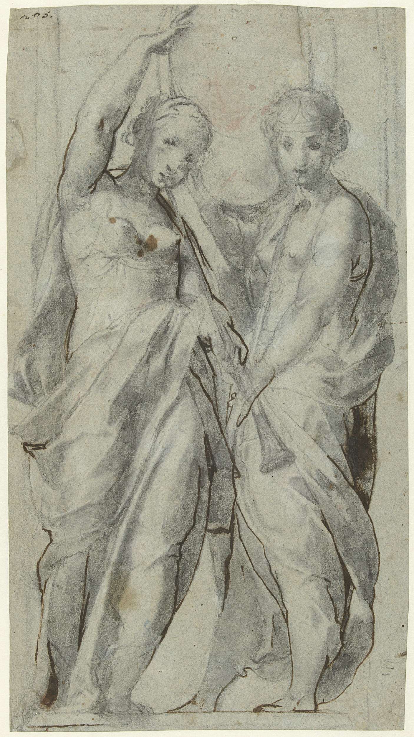 Twee vrouwen met bazuinen aan de mond
