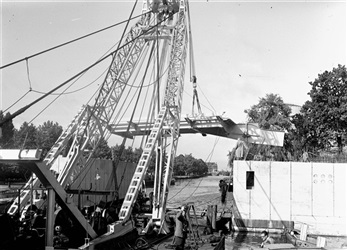 Kraan plaatst bovenbouw Sint Sebastiaansbrug in Delf...