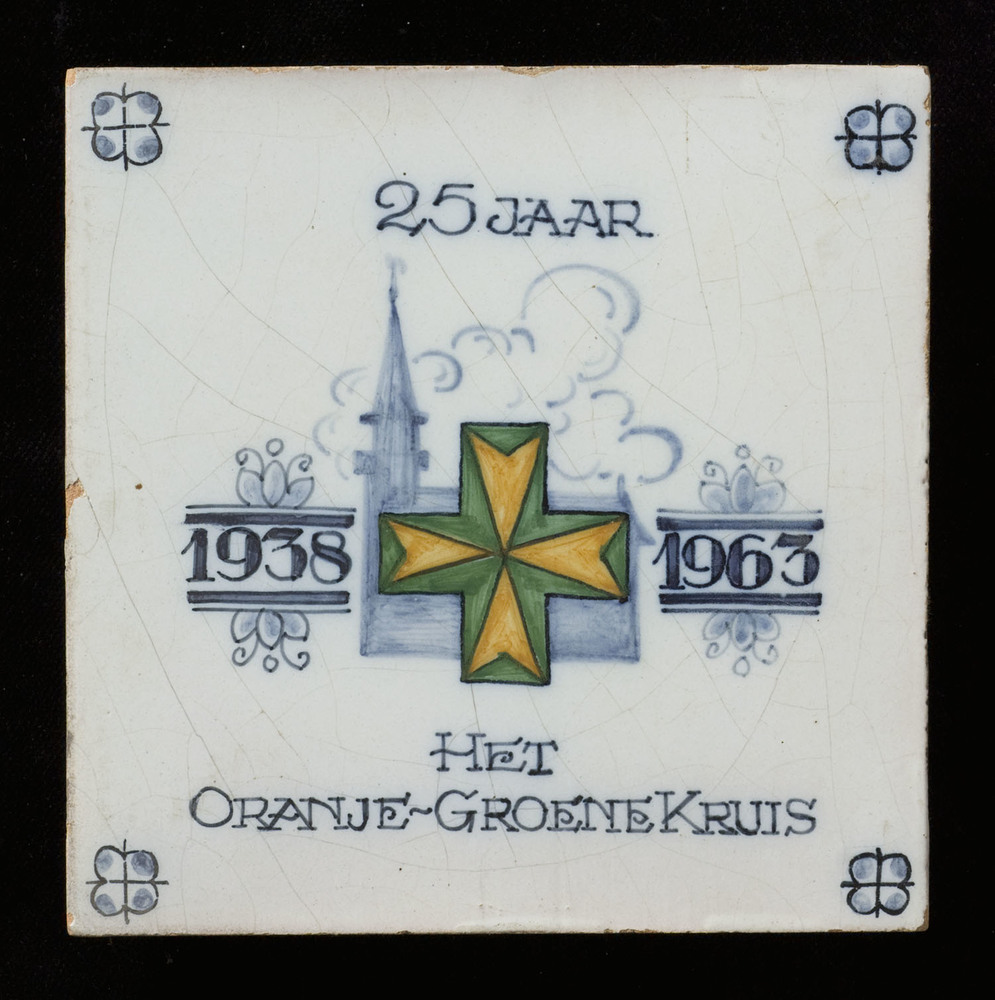 Tegel van keramiek, tinglazuur, voorstellende een ge...