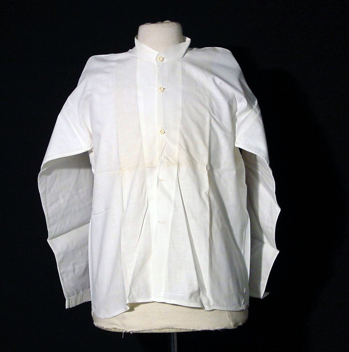 Wit linnen broek en jas behorend bij een Jauk-kostuum