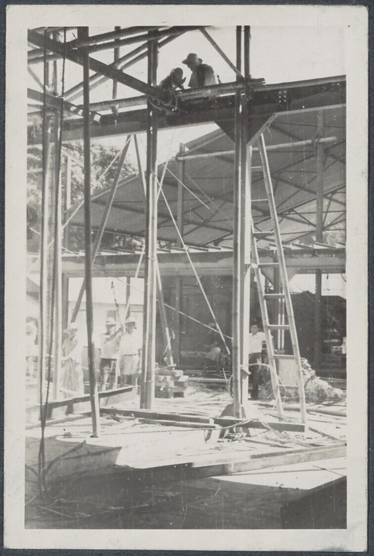 Arbeiders bouwen skelet voor een fabriek