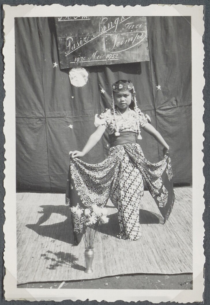 Portret van een meisje in Javaanse kleding tijdens e...