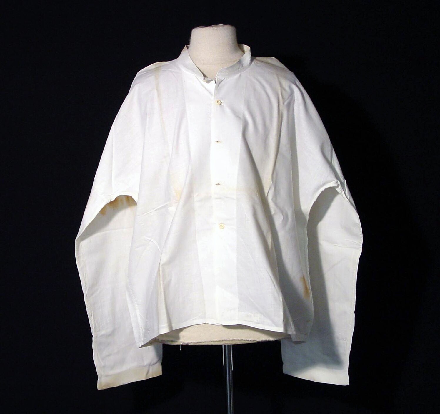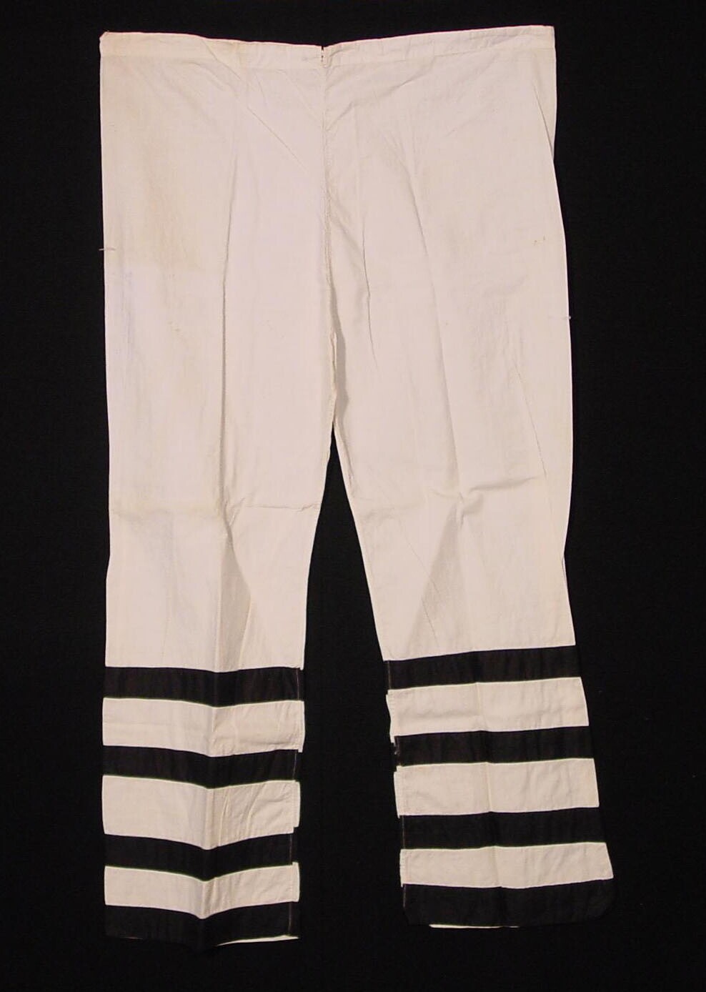 Wit linnen broek en jas behorend bij een Jauk-kostuum