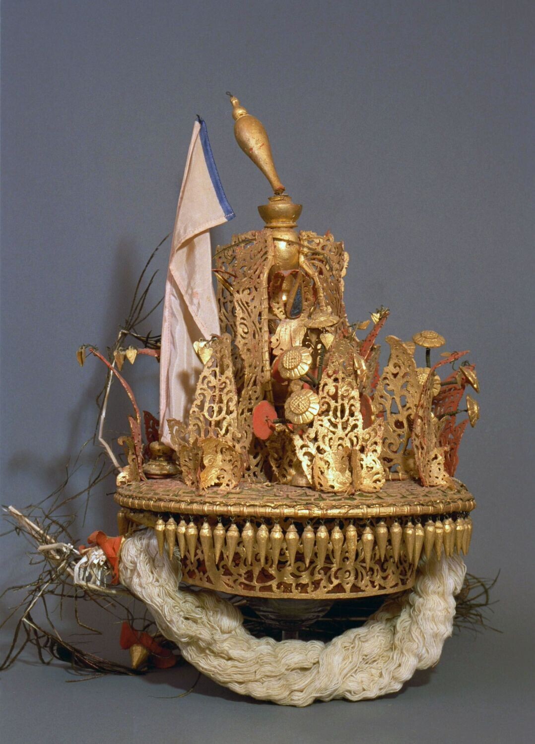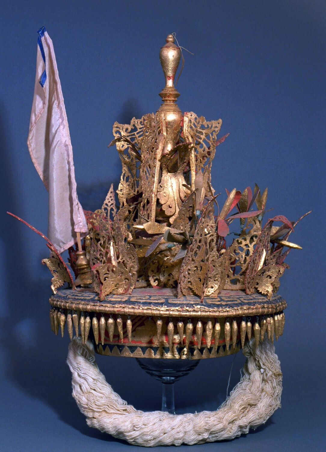 Houten masker voorstellende Jauk Keras, behorend bij...