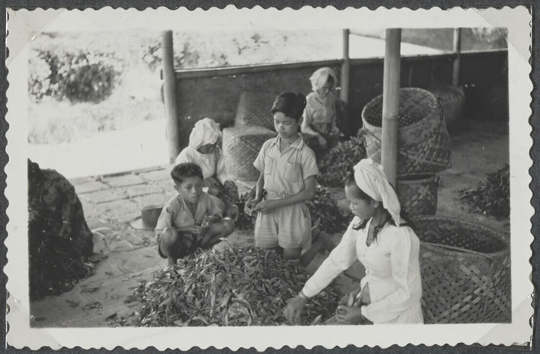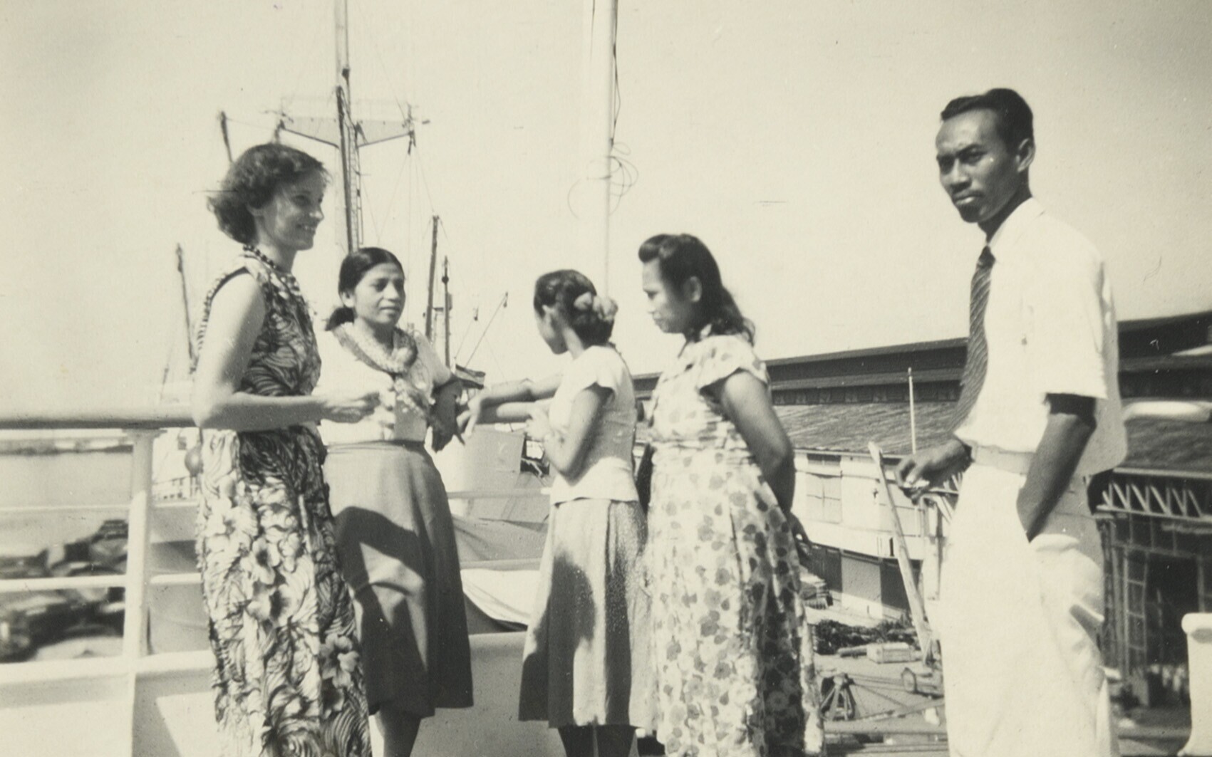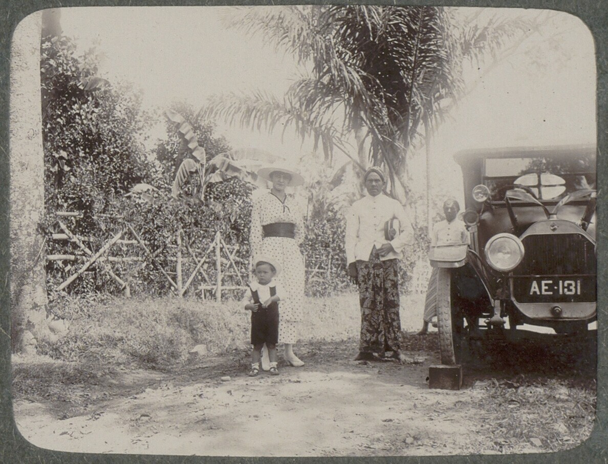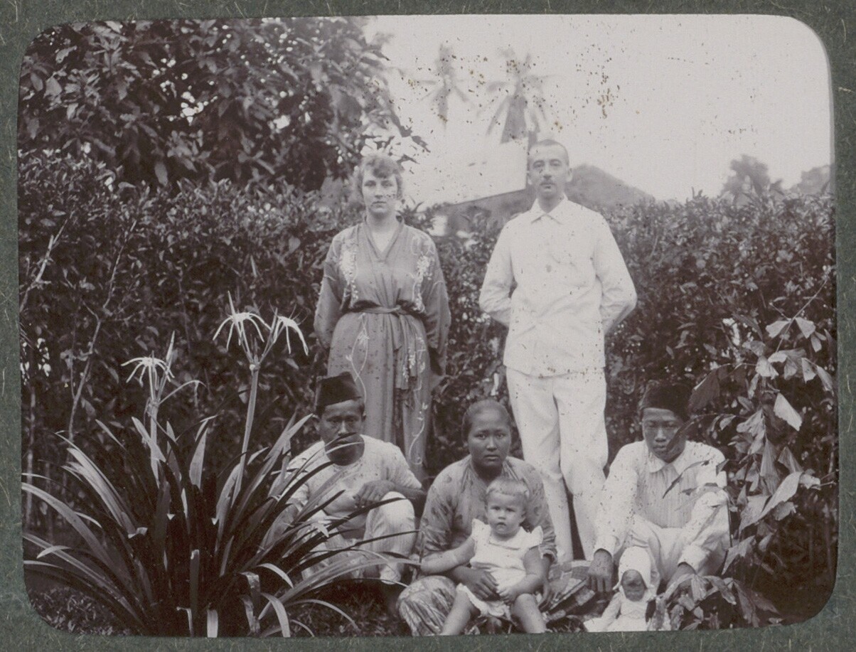 Europese mannen en Europese vrouw op bezoek bij Java...