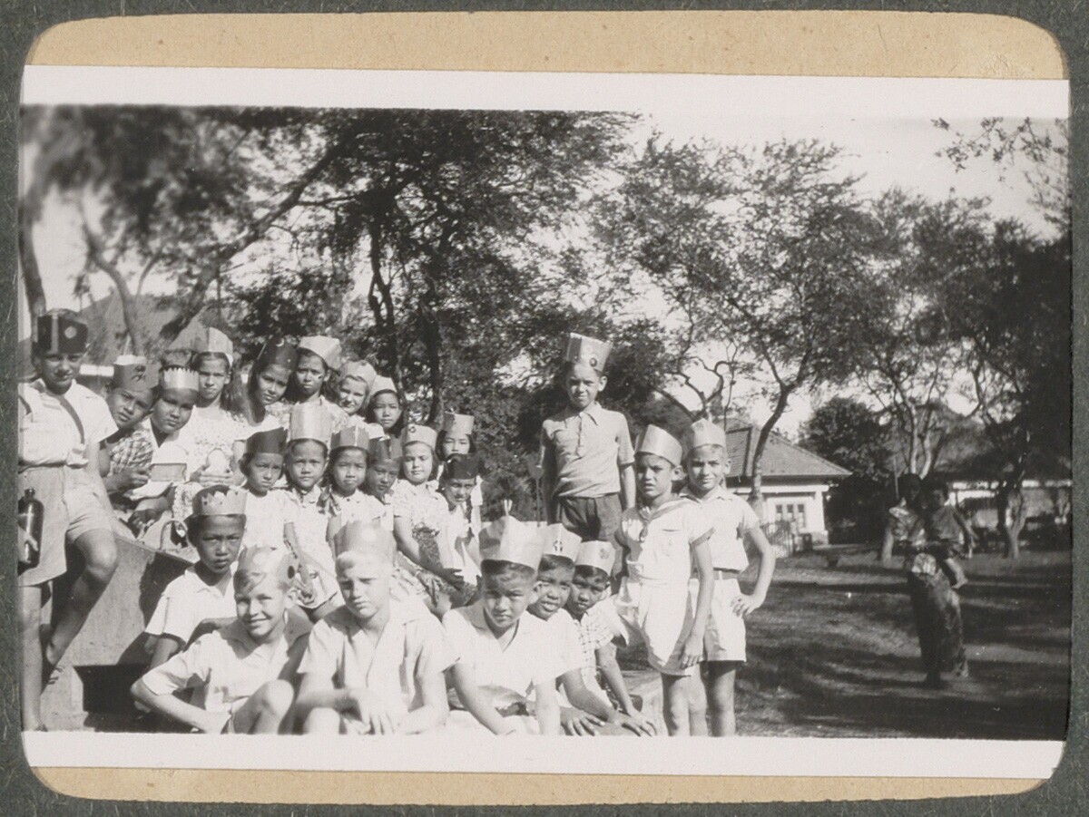 Europese en Javaanse schoolkinderen met zelfgemaakte...