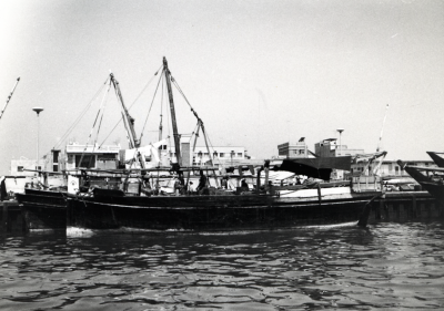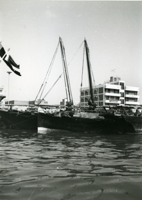 Schepen in de haven, bakboordzijde, van schuin achte...