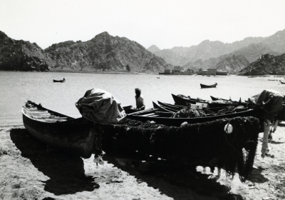 Enkele boten zonder mast, beladen, een persoon.