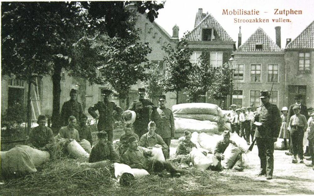 Oorlog 1914-1918 Mobilisatie Zutphen Stroozakken vullen