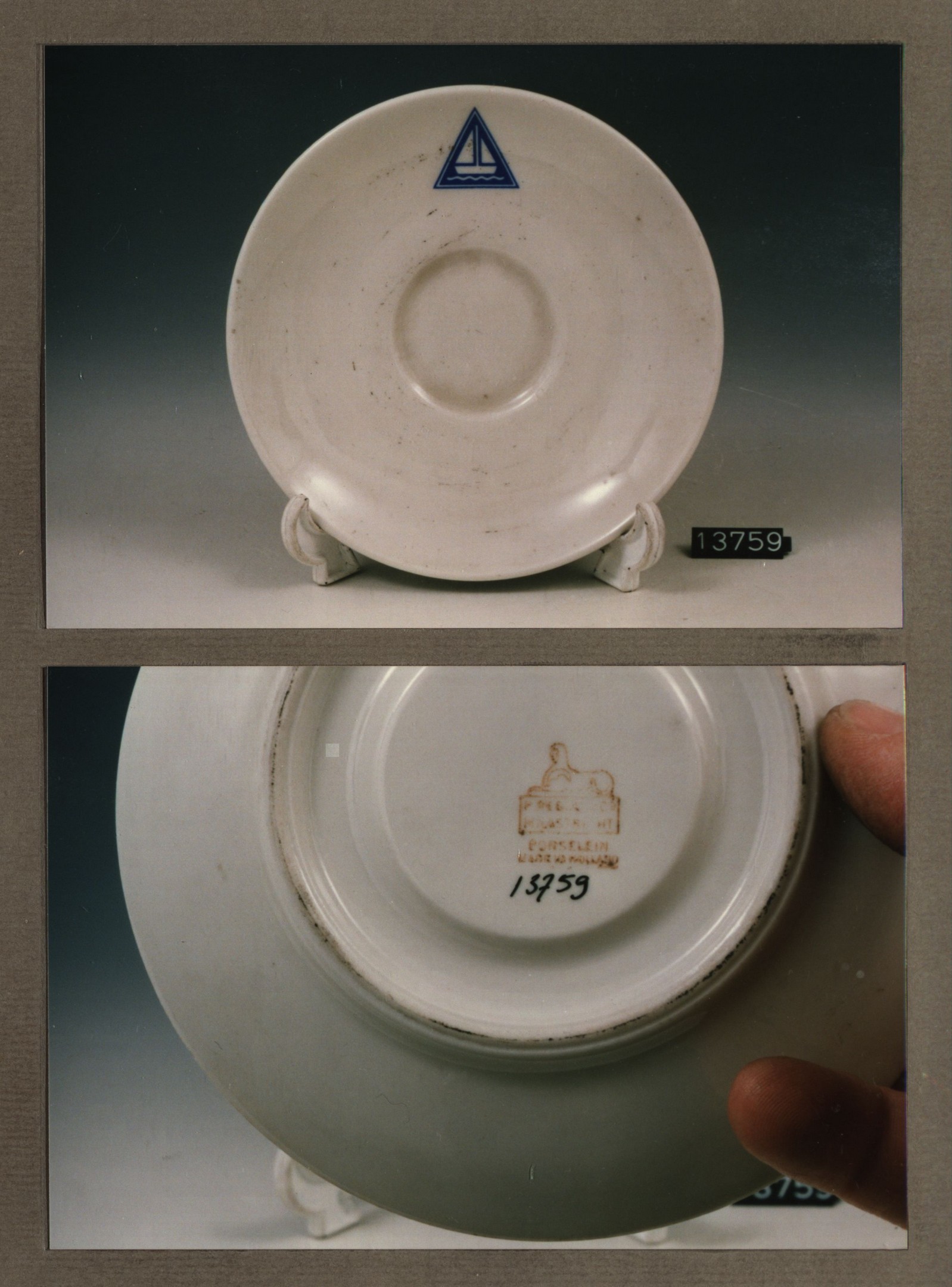 Schotel - plat, model A met decor Scheepje
