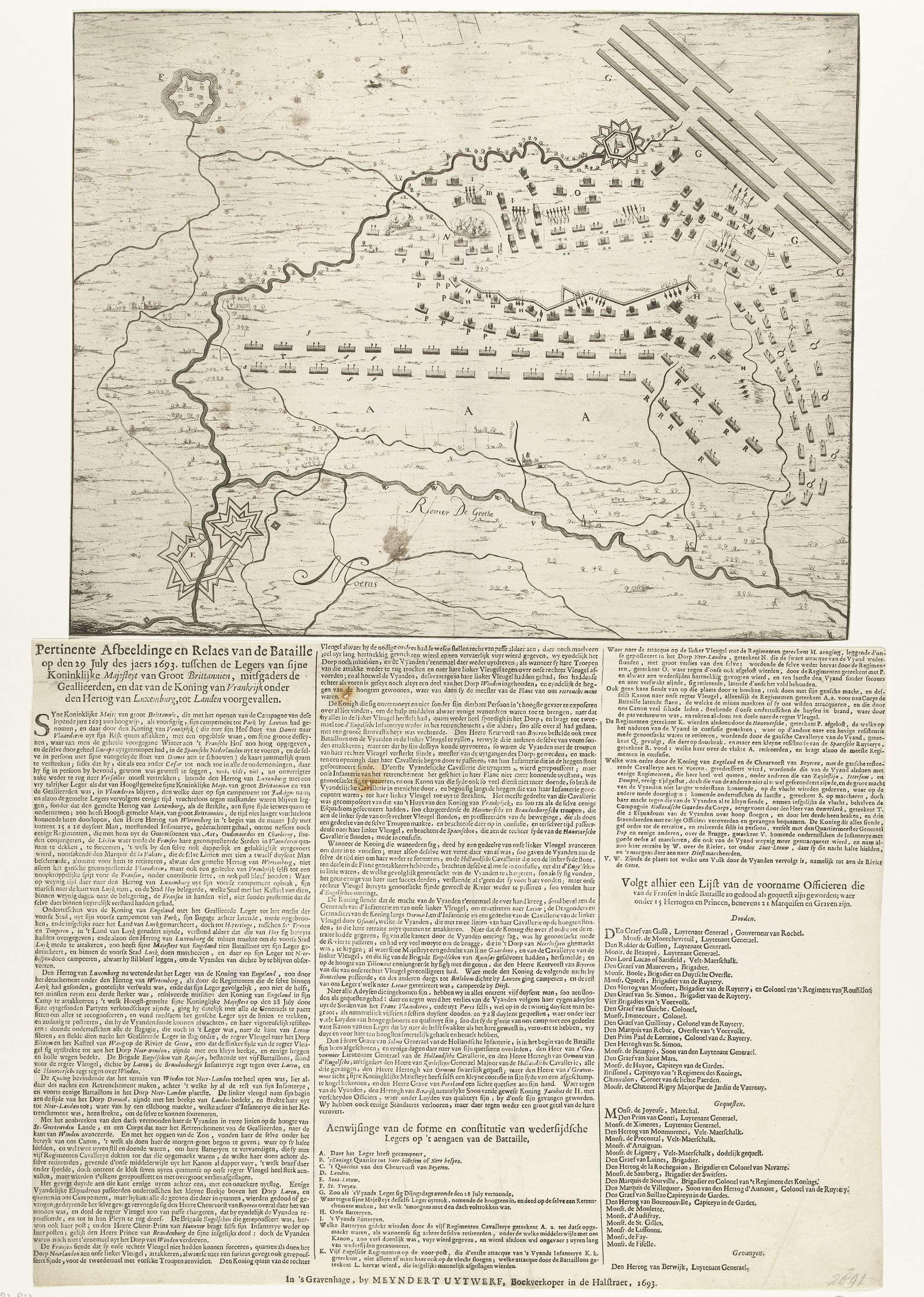 Kaart van de slag bij Landen, 1693