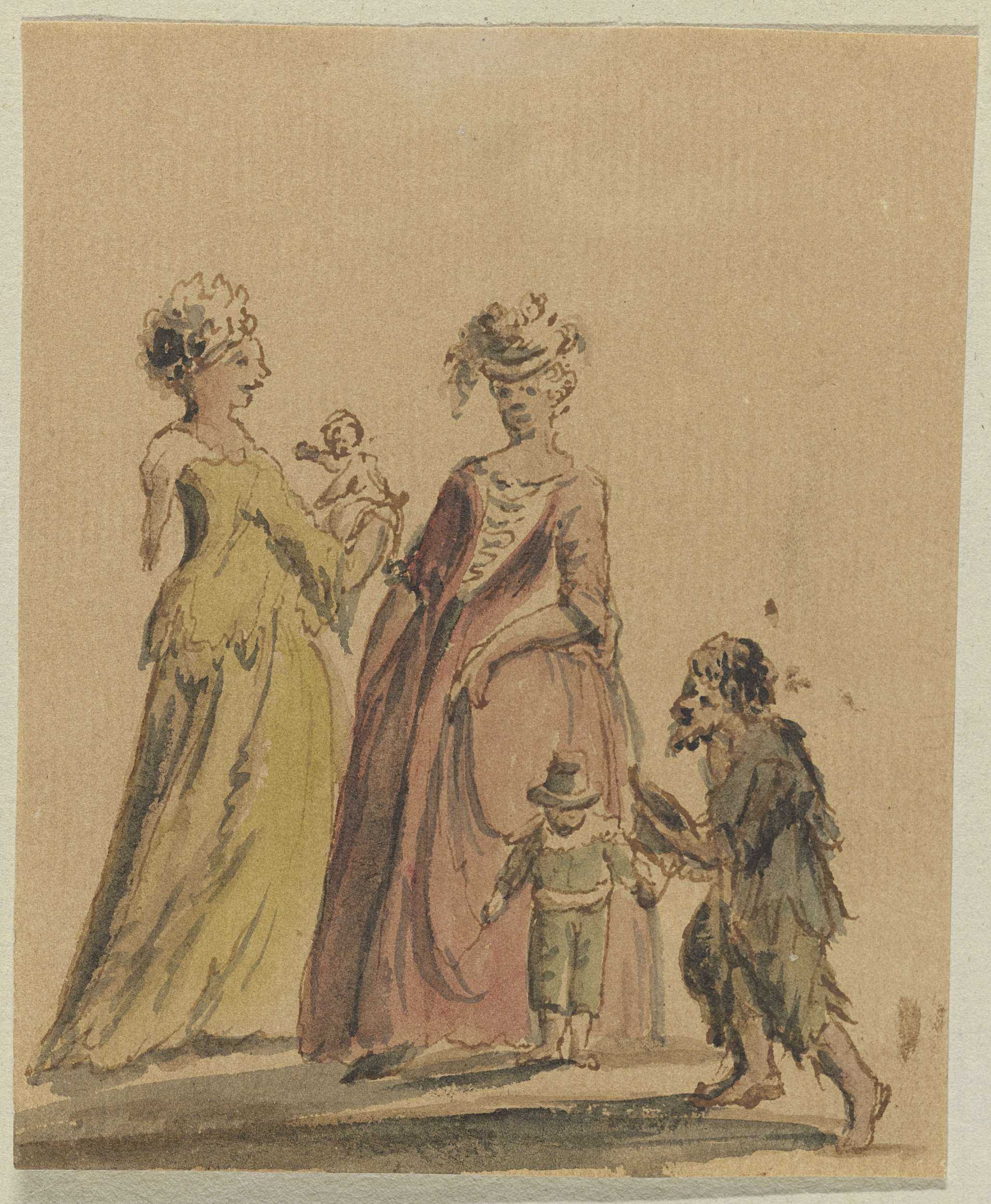 Twee rijk geklede vrouwen met elk een kind en een be...