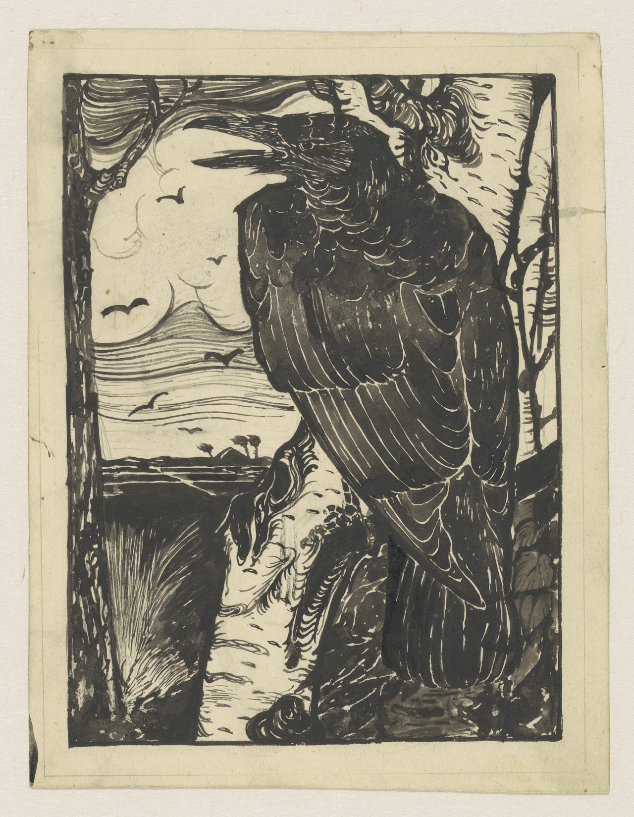 Raaf op berkenboom
