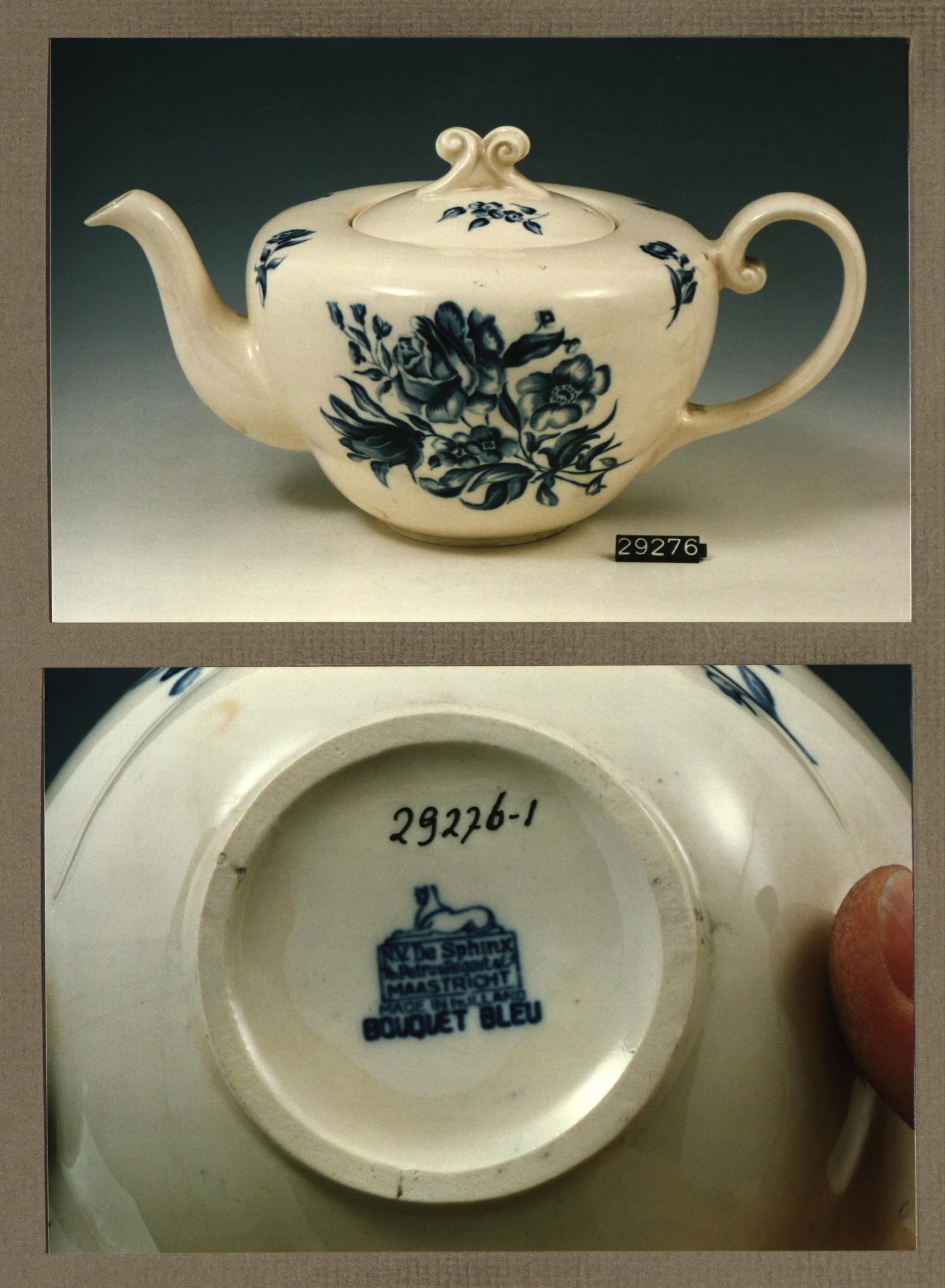 Theepot, model Boudewijn met decor Bouquet bleu