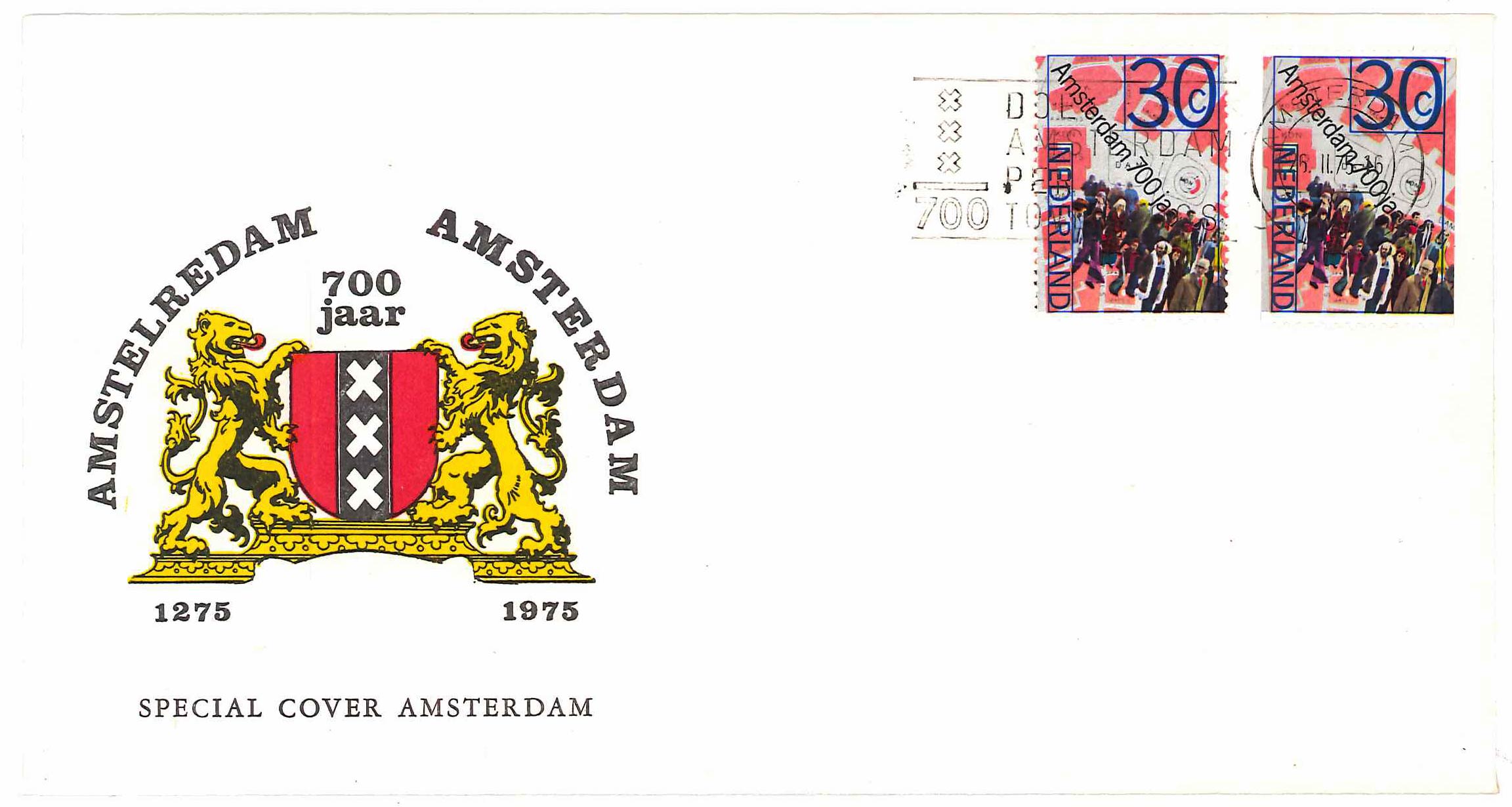 Alternatieve eerstedag-envelop met Amsterdam 700-zegels