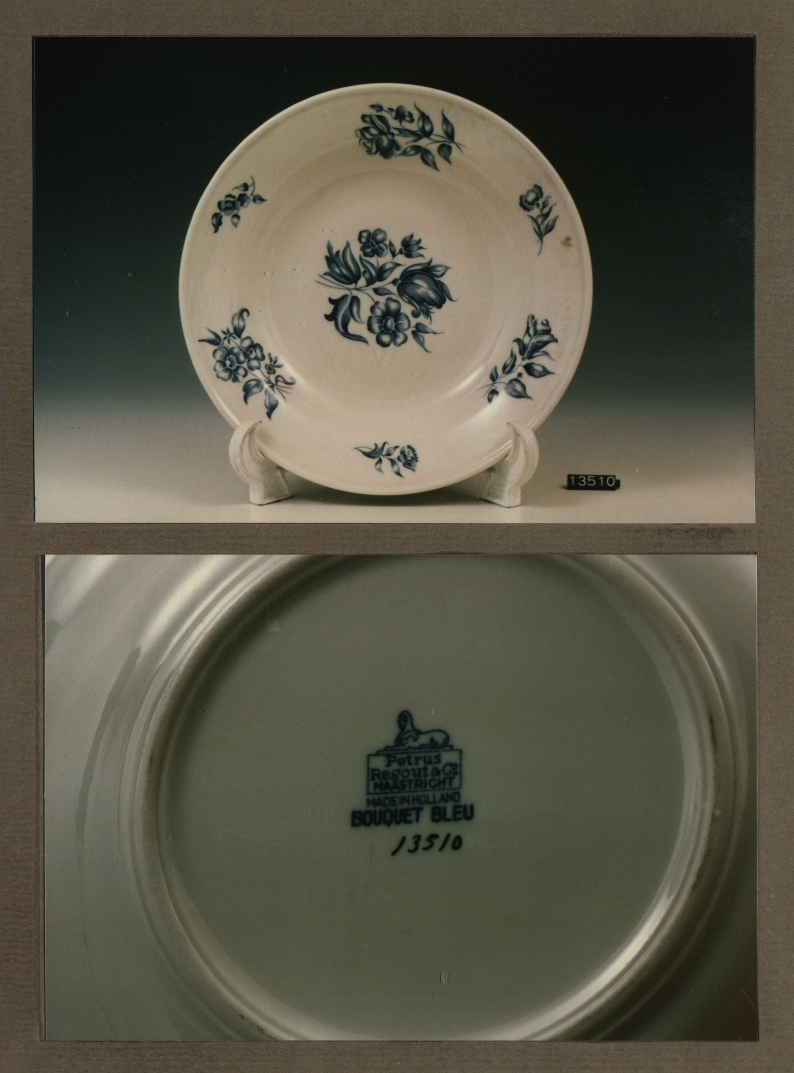 Diep bord, model H met decor Bouquet bleu