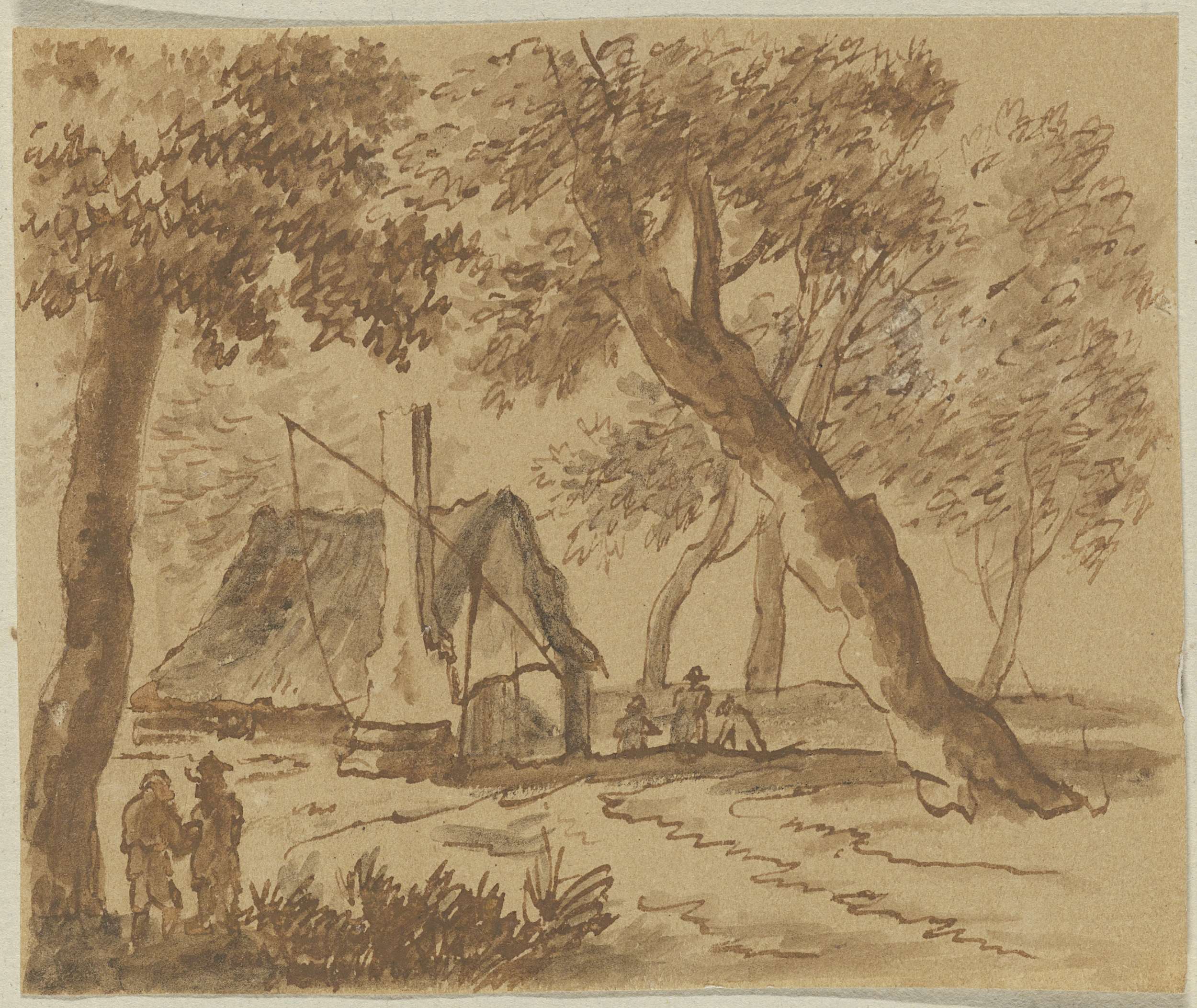 Boslandschap met figuren en vee