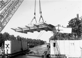 Kraan plaatst bovenbouw Sint Sebastiaansbrug in Delf...