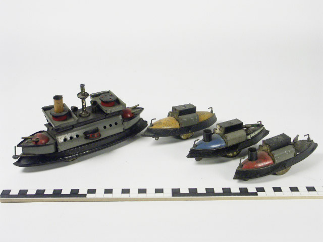 Vloot oorlogsschepen met kruiser en drie volgboten