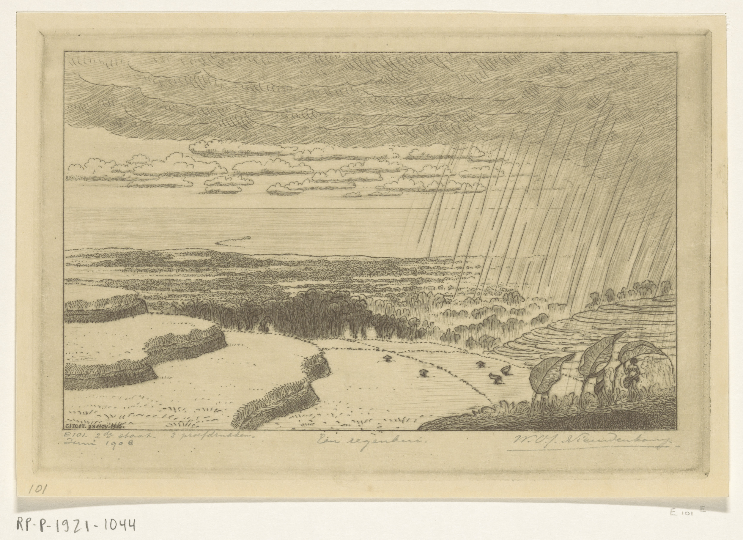 Regenbui boven de rijstvelden bij Gitgit op Bali