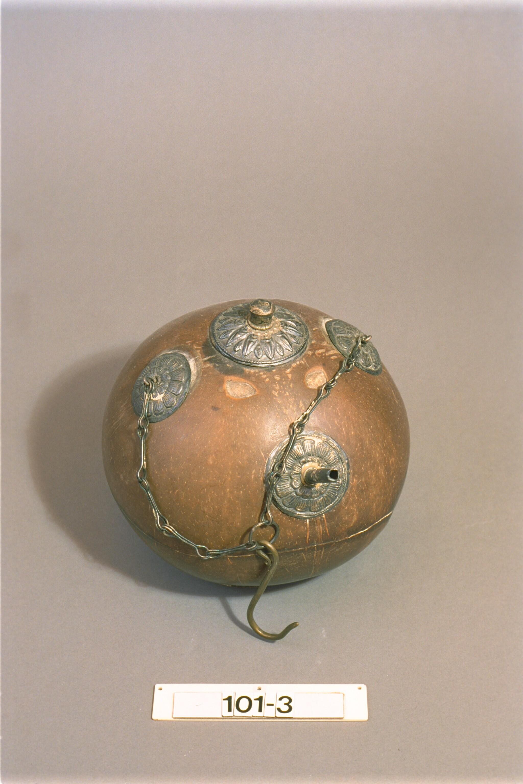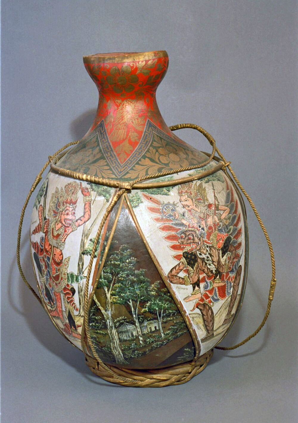 Beschilderde kruik van kalebas voorstellende Wisnu o...
