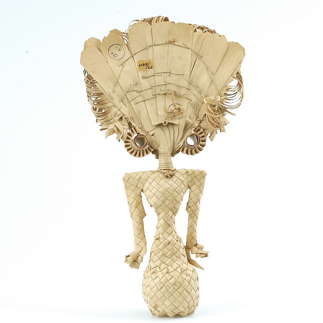 Pop van gevlochten lontarblad voorstellende de rijst...