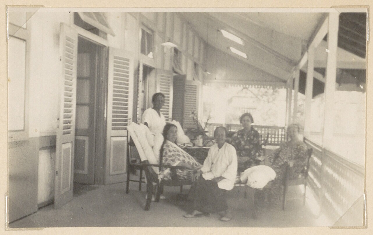Visite in het huis van de fam. Voskuil te Padang. 1927