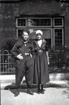 Man en vrouw in Urker klederdracht.