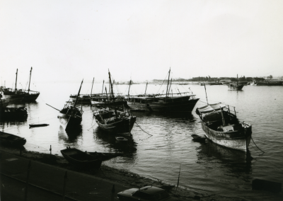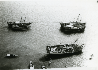 Veel afgemeerde schepen.