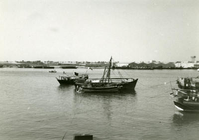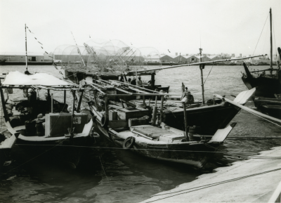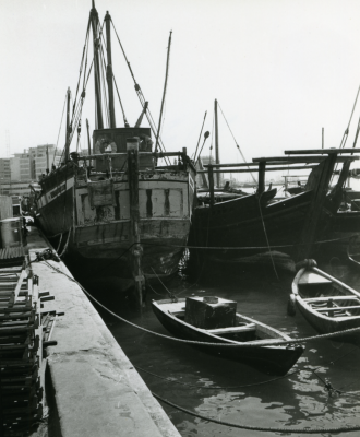 Enkele schepen, afgemeerd.