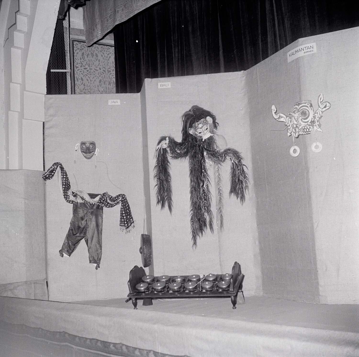 Maskers van Java, Bali en Kalimantan op de tentoonst...