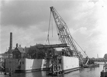Bouw van middenpijler Sint Sebastiaansbrug in Delft,...