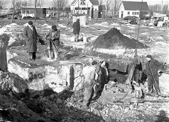 Bouw van kelder provinciehuis in Den Haag, 1960