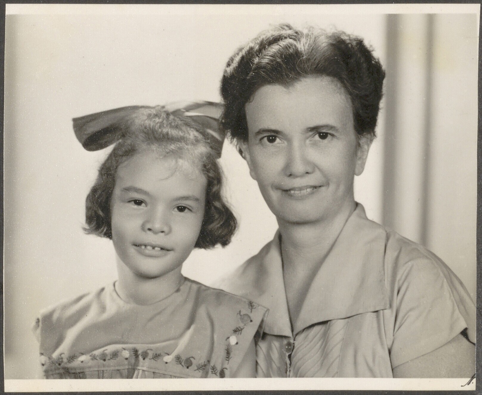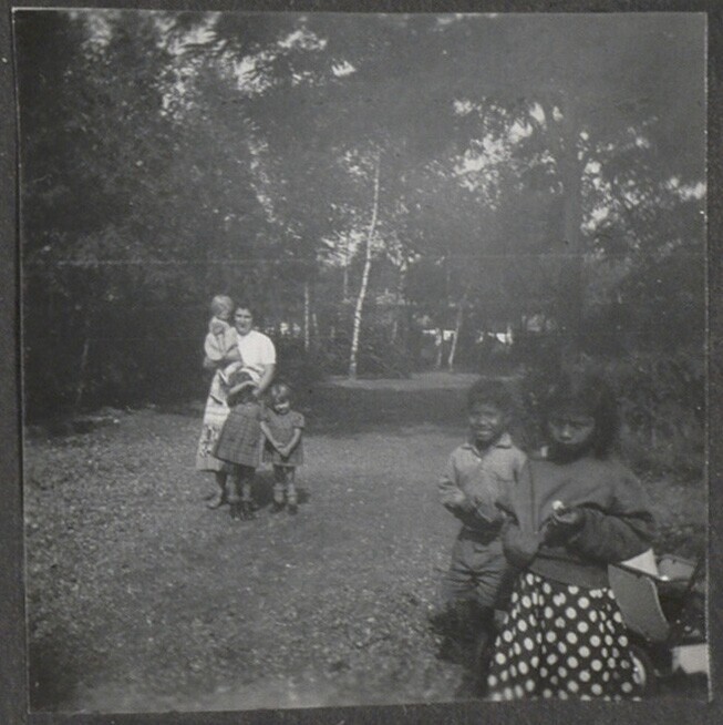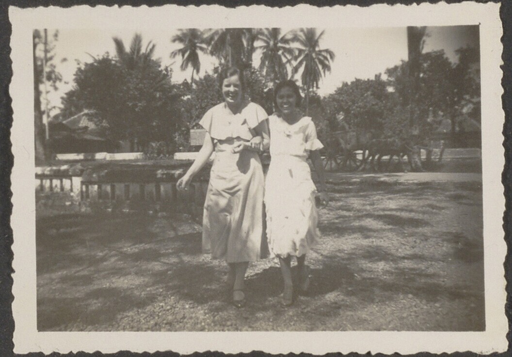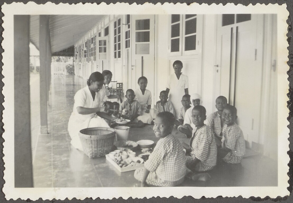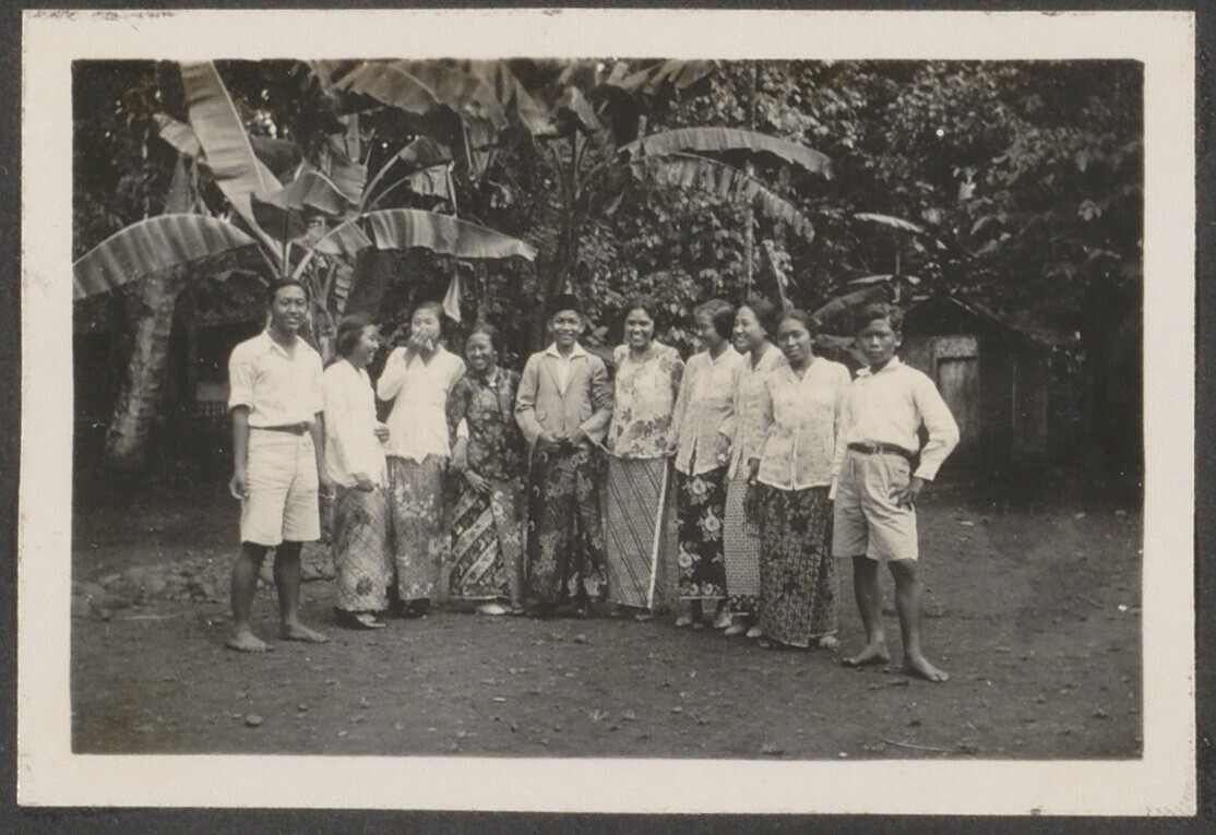 Europese vrouw met drie kinderen en twee Javaanse ki...