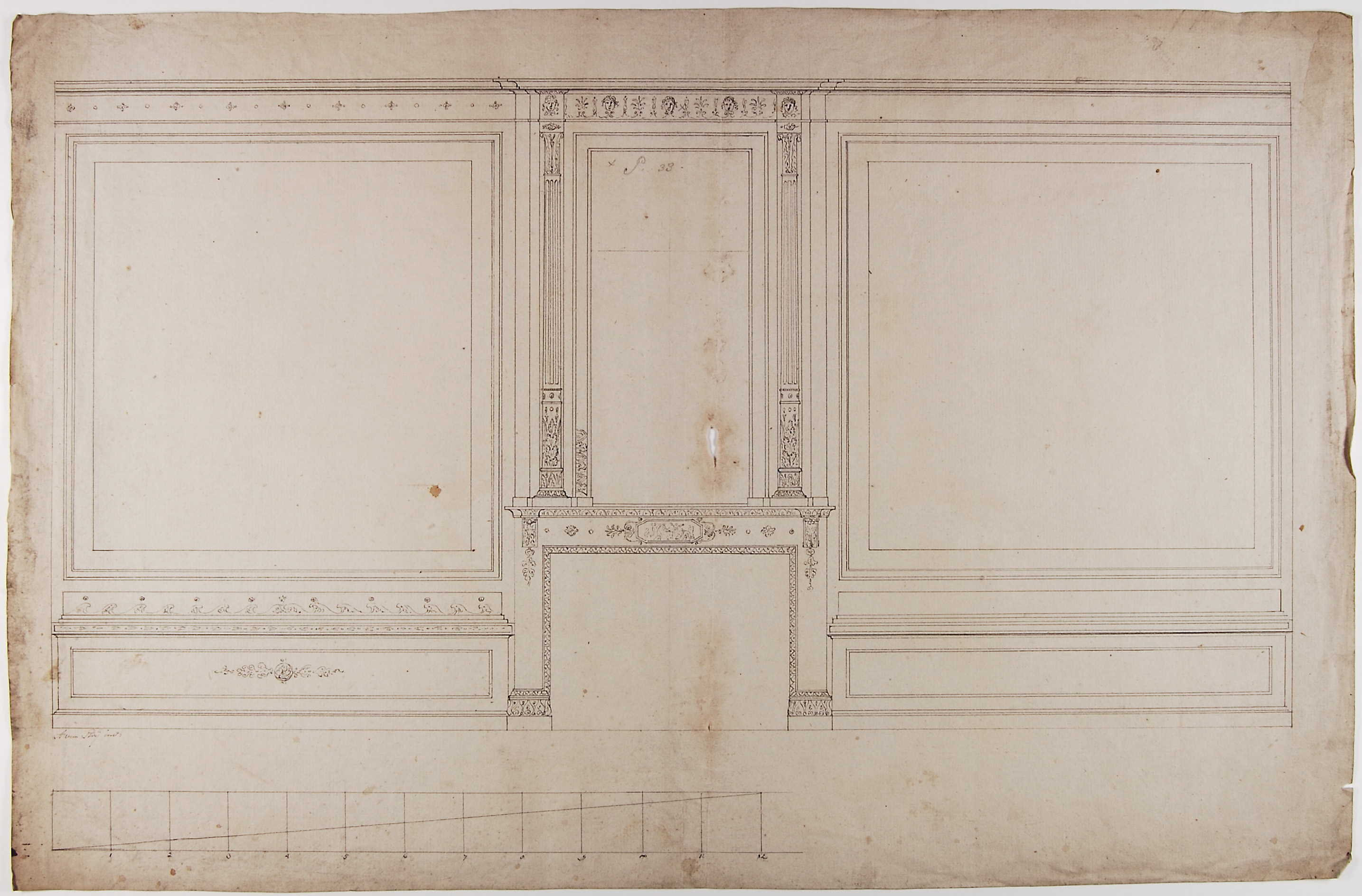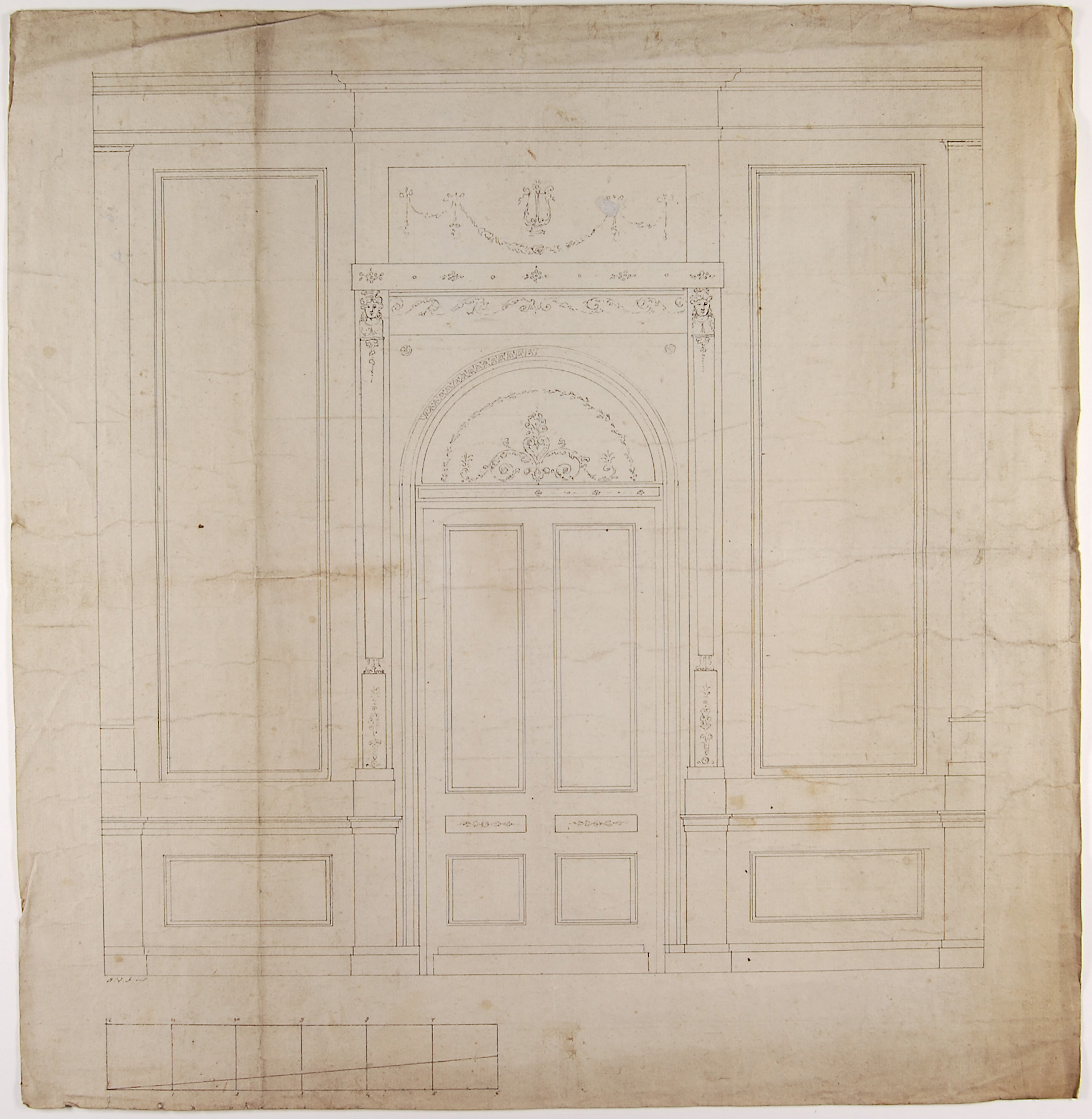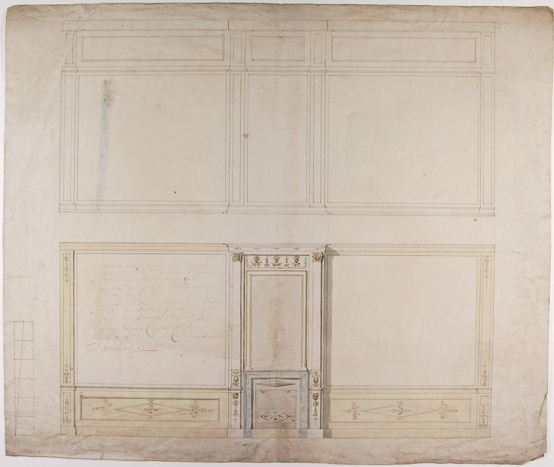 Ontwerp voor een wandindeling met penanttafel, spieg...