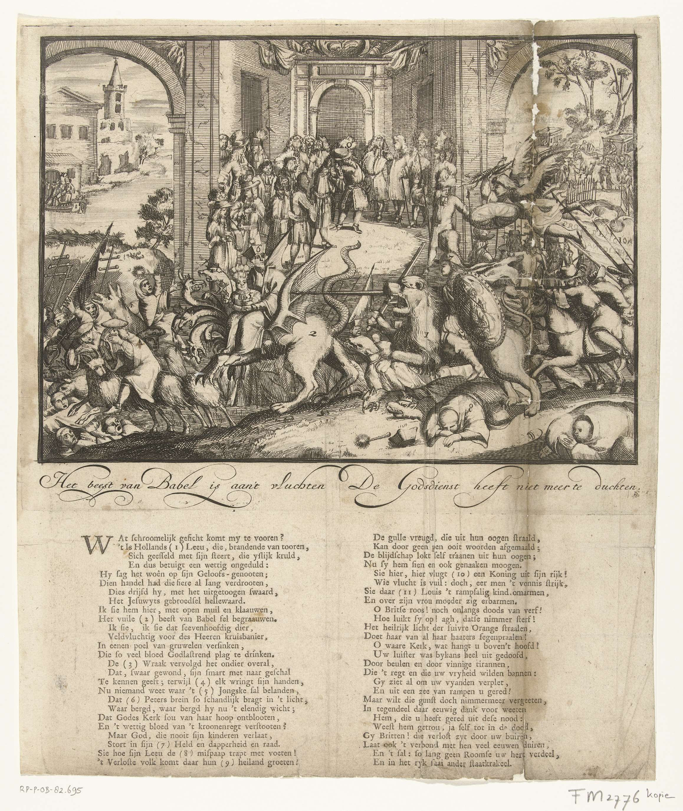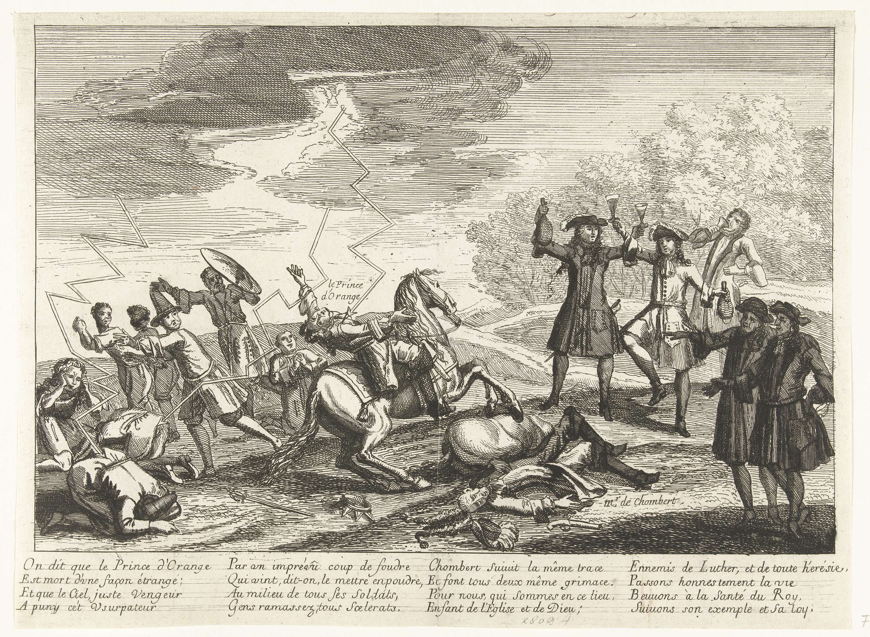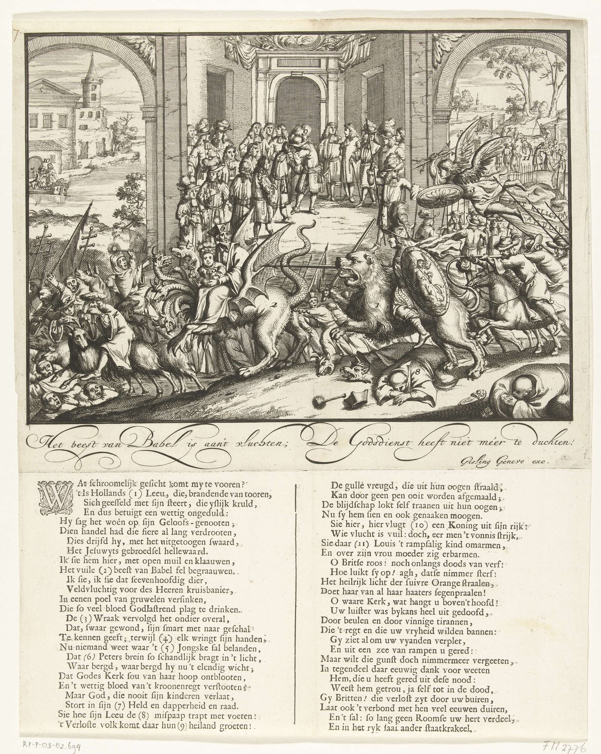 Spotprent op Jacobus II en de komst van Willem III, ...