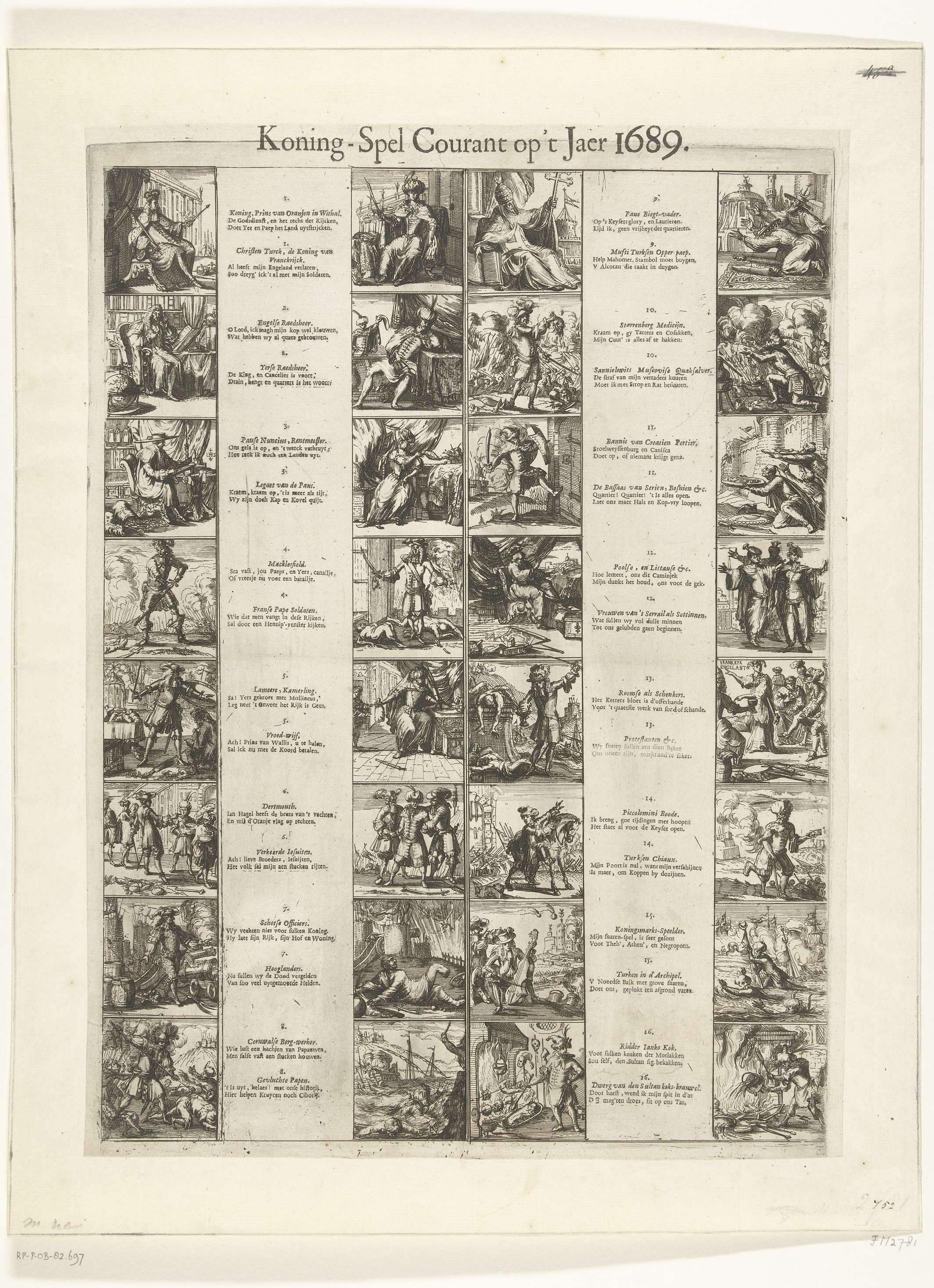 Spotprent op Lodewijk XIV in een kinderstoel, 1689