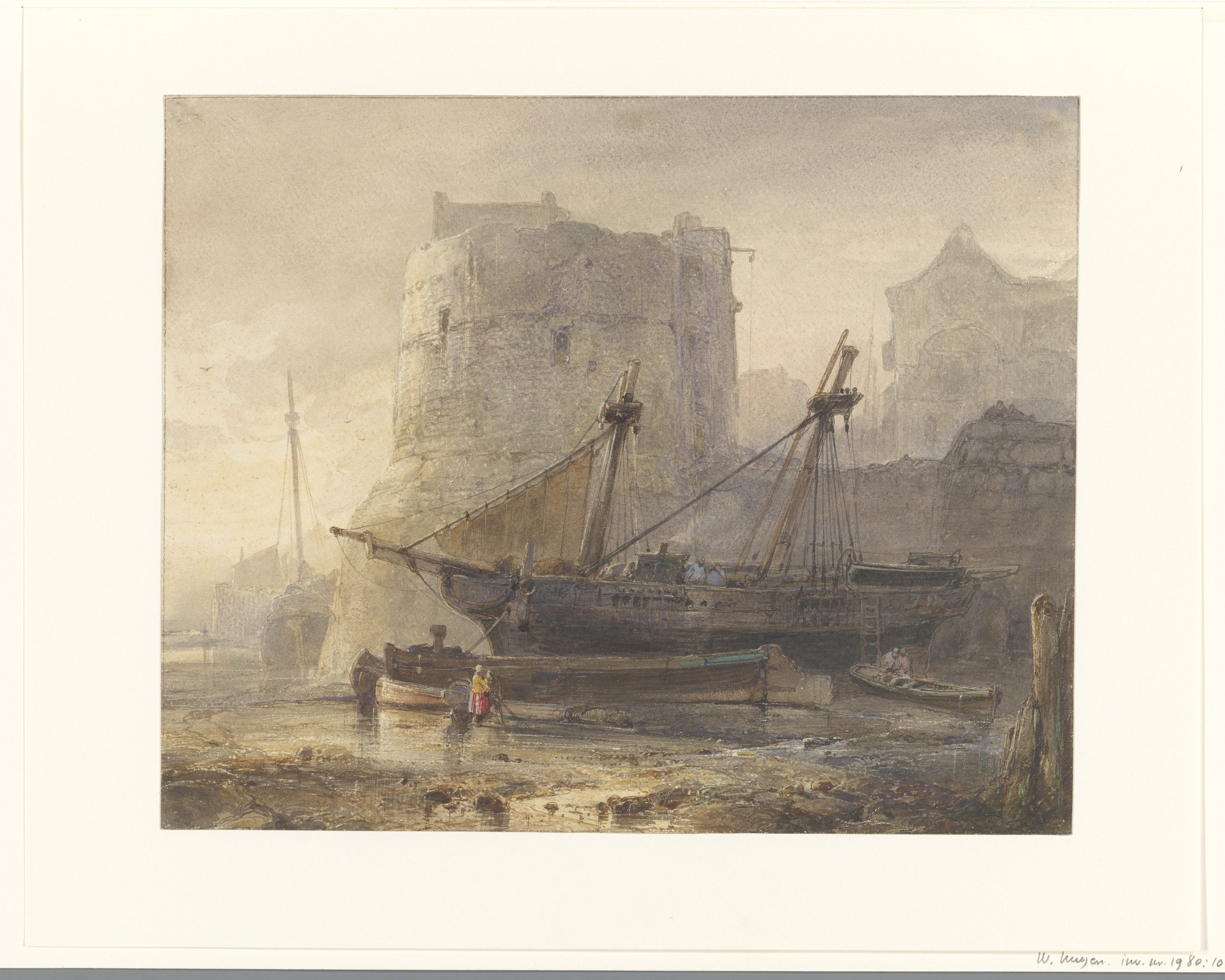 Schepen bij laag water in een Franse haven