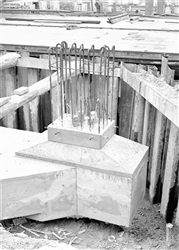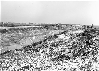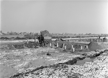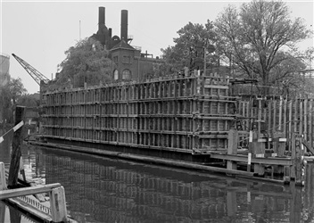 Bouw van kelderwand Sint Sebastiaansbrug in Delft, 1960
