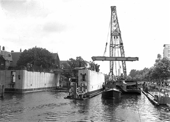 Kraan plaatst bovenbouw Sint Sebastiaansbrug in Delf...