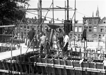 Bouw van middenpijler Sint Sebastiaansbrug in Delft,...