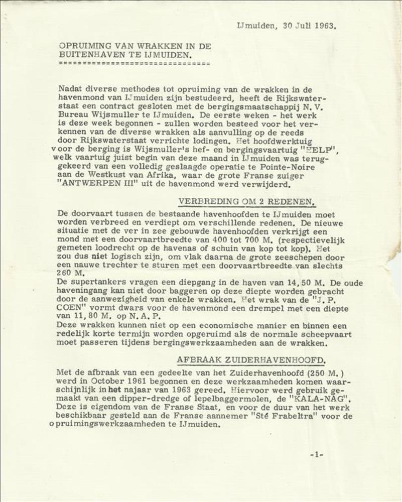 Opruiming van wrakken in de buitenhaven van IJmuiden...