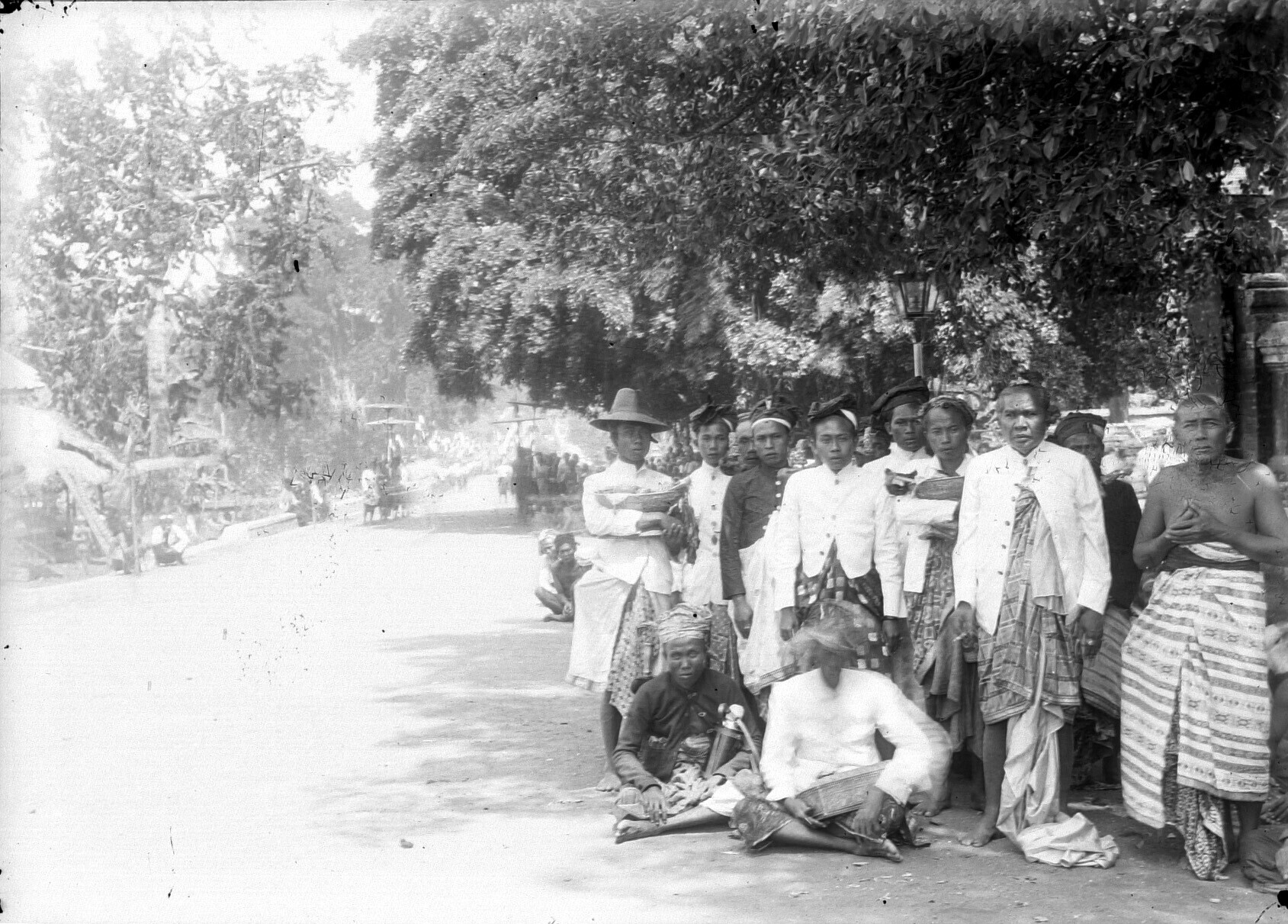 Groepsportret met de cokorda van Oeboed langs de kan...