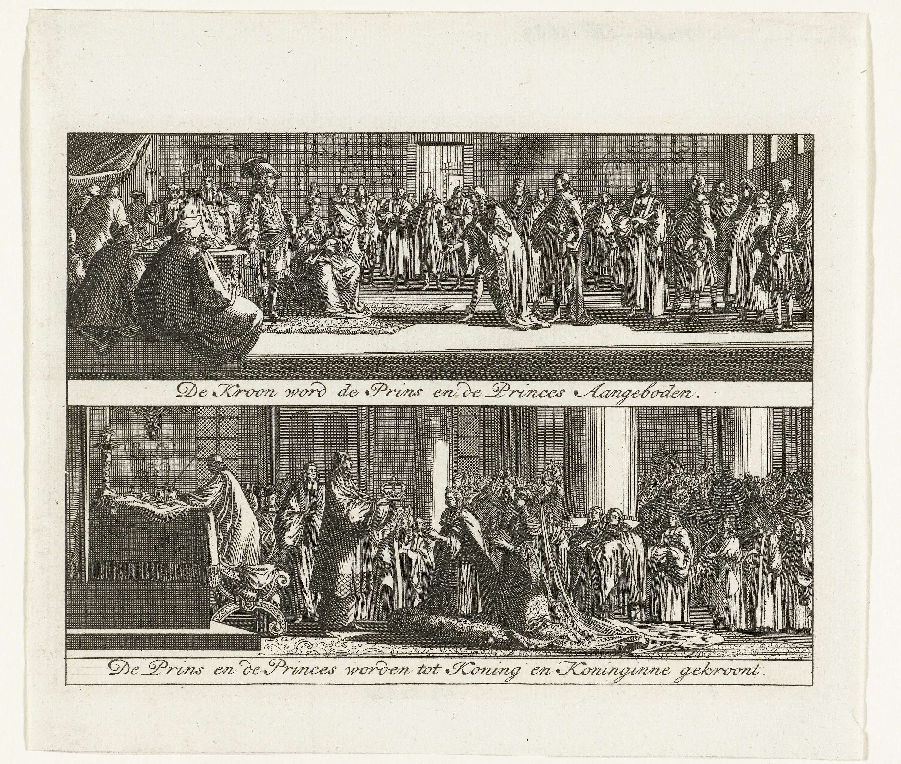Koning Willem III en koningin Maria ontvangen de kro...