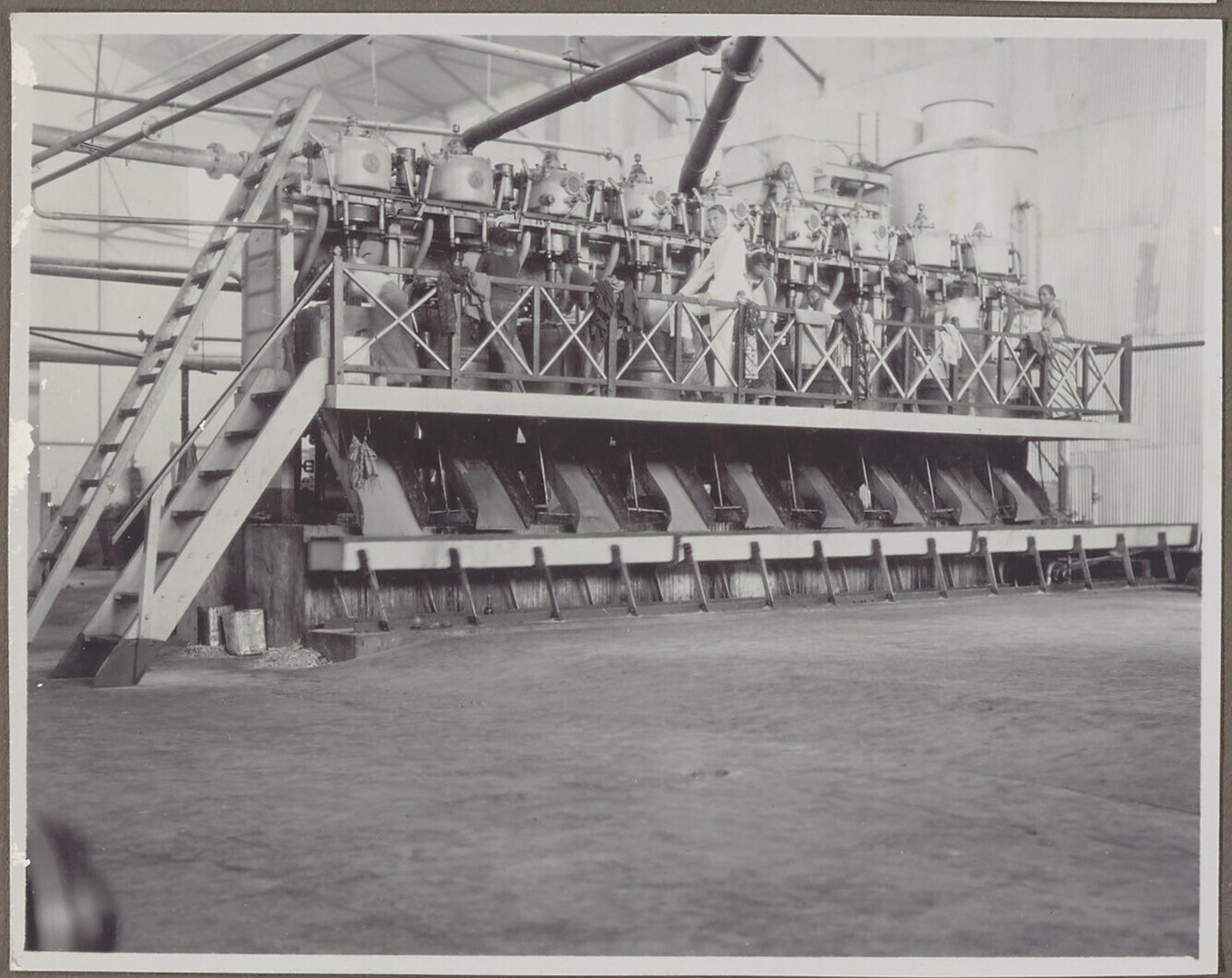 Groepsportret van werknemers voor de fabriek