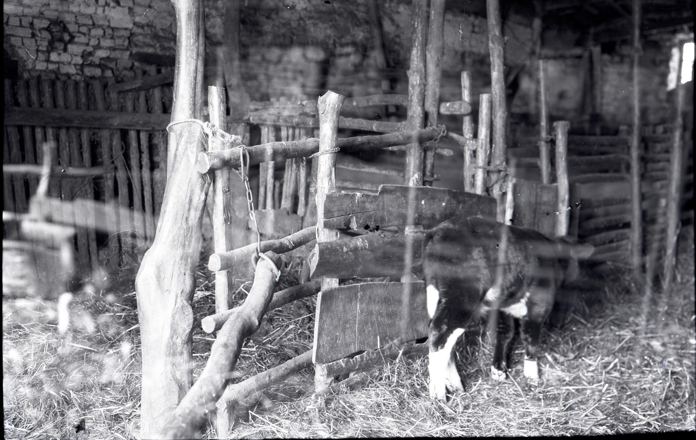 Potstal met een kalf, Den Dungen, 1937 (zwart-wit foto)