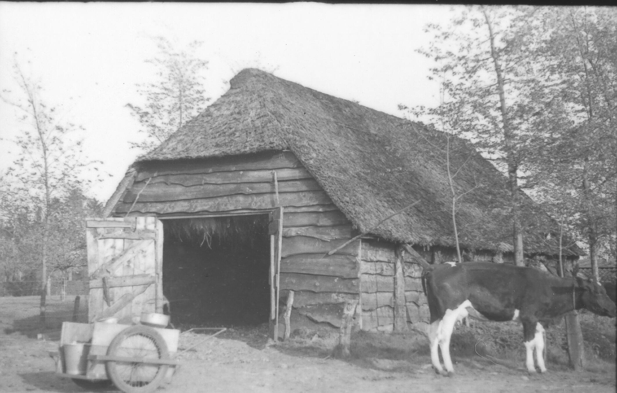 Houten schuur, Overwoud, 1938 (zwart-wit foto)