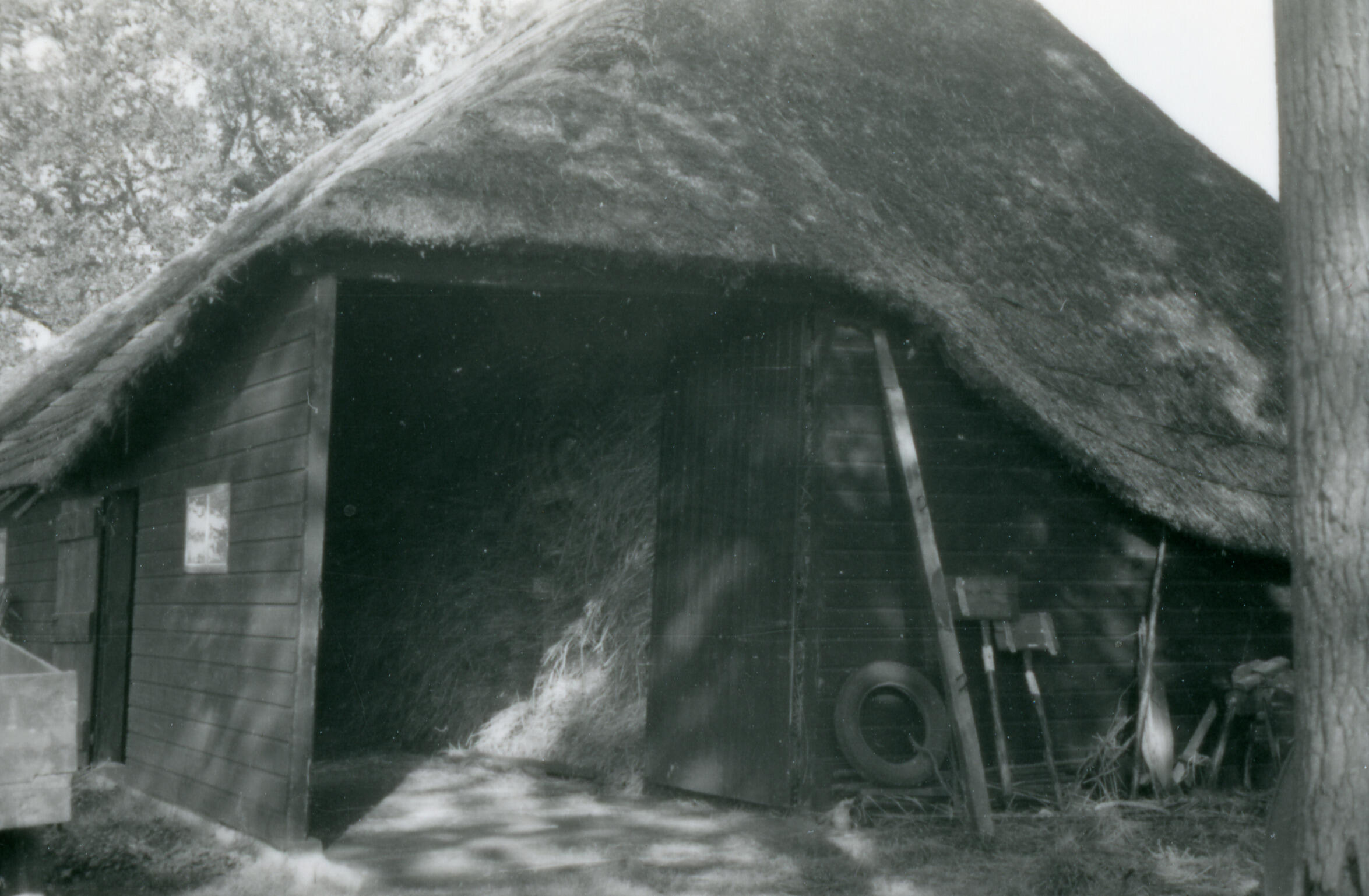 Schuur met strowanden, Deurne, 1940 (zwart-wit foto)